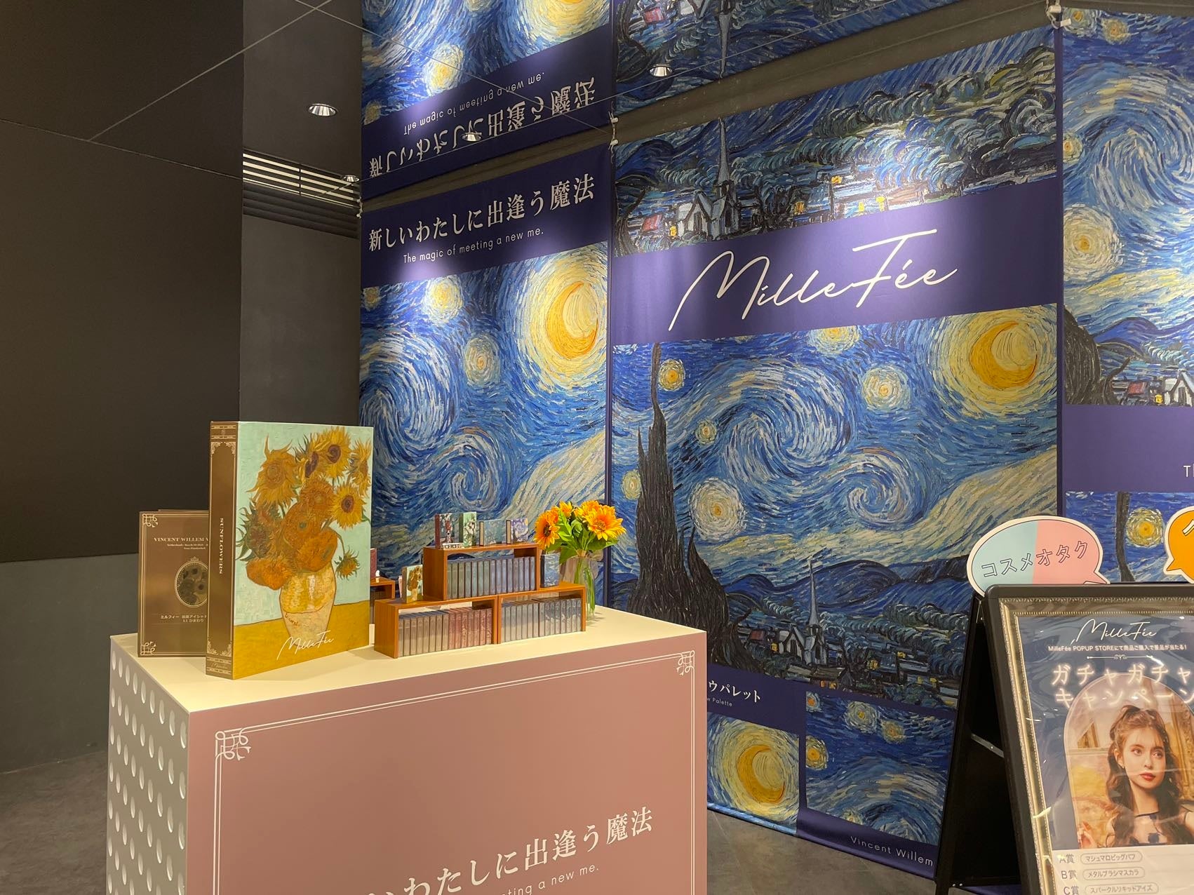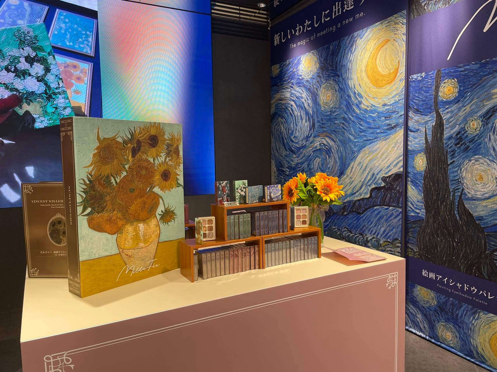 POP UPブース内の壁面には、とりわけ人気カラーの「08 星月夜」に使用されたゴッホの星月夜が一面に映され、まるで絵の世界に入り込んだような感覚をお楽しみいただけます。