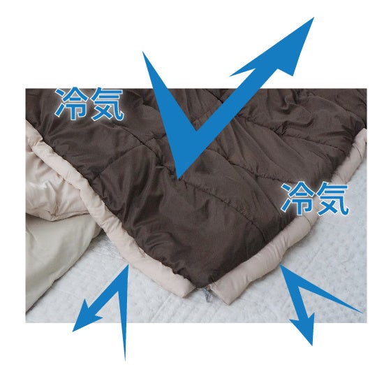 冷気の侵入を許さない!!軽くてあたたかい寝袋の長所を活かした、掛け布団に組み合わせる新たな寝具を開発しました。