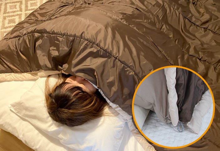 冷気を防いで暖かさを逃さない、かける寝袋「かけねぶくろん」新発売!冬の布団の寒さ対策におすすめ。
