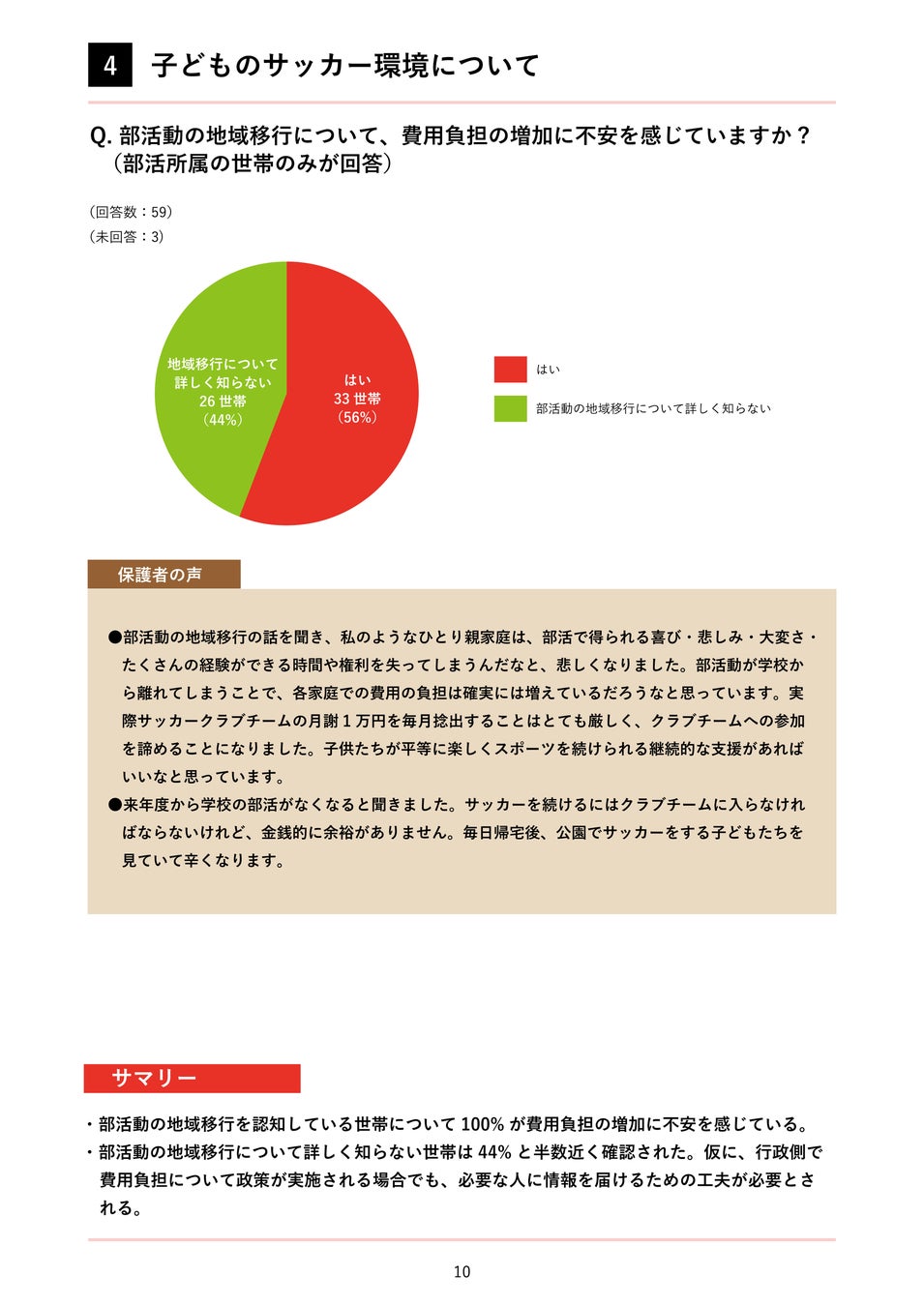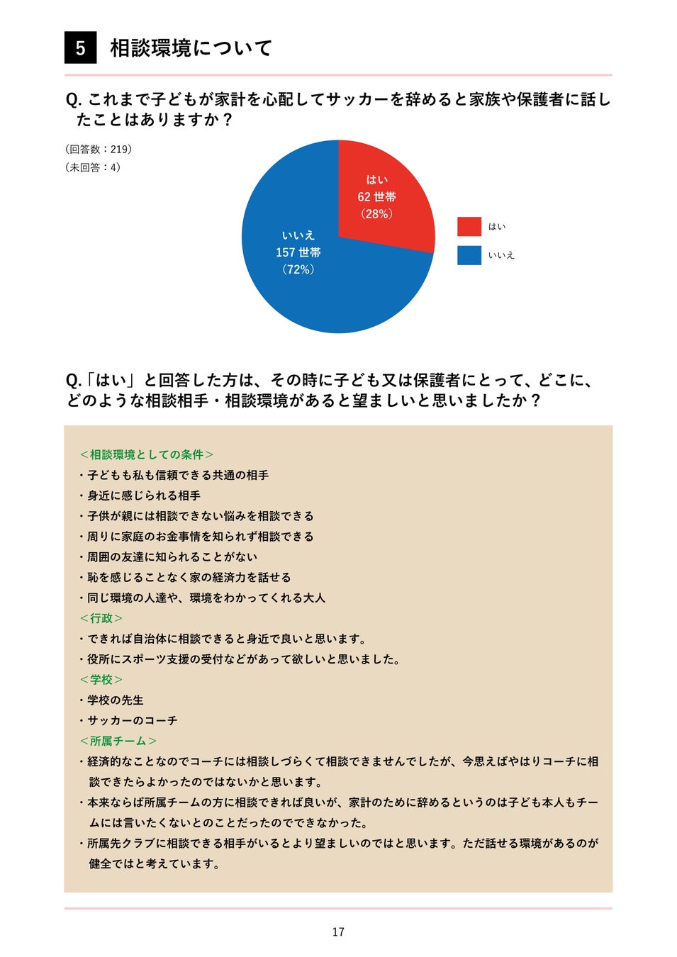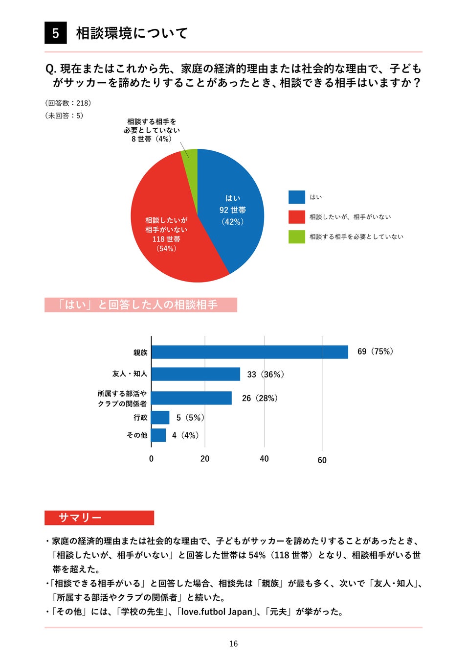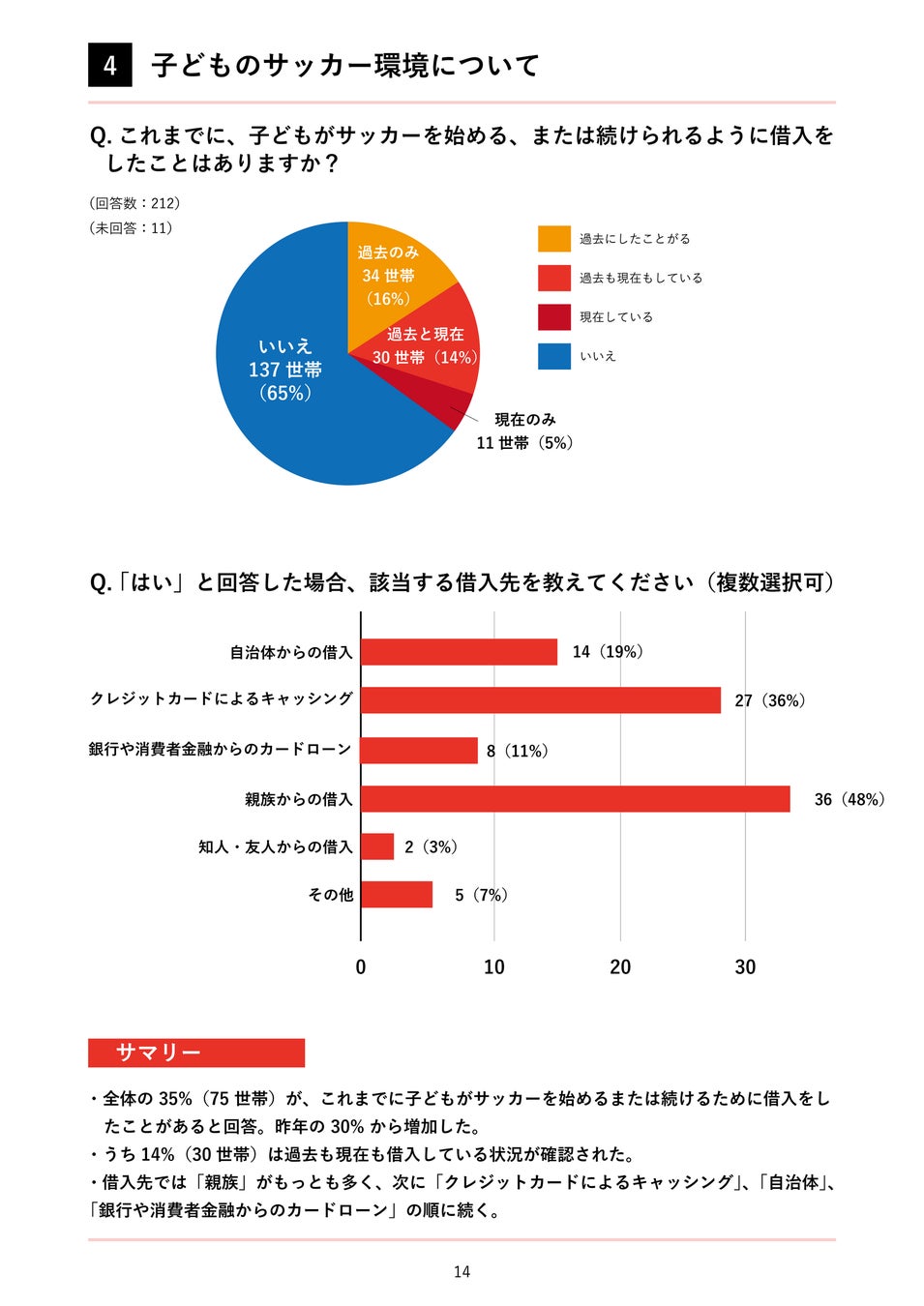 支援世帯のうち約30%の子どもが家計を理由にサッカーを辞める相談を家族にしていた。貧困や社会格差による、子どものサッカー体験格差に関するアンケート調査結果を公開。