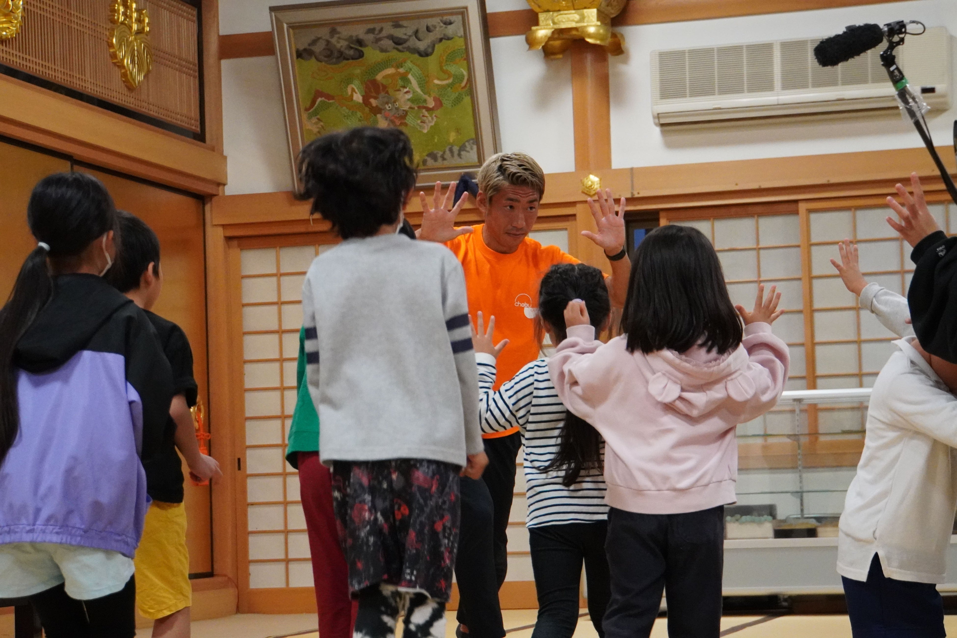▼2023年11月10日 橿原市・信光寺でJリーガー浅川選手による「移動式こども食堂」を開催