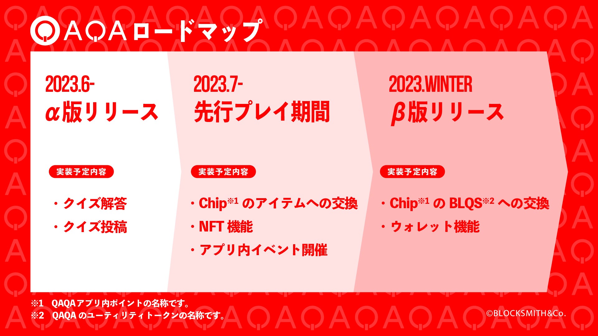 株式会社BLOCKSMITH&Co. (本社:東京都港区、代表取締役社長CEO 真田 哲弥、以下「BLOCKSMITH」)は、2023年9月21日(木)から 9月24日(日)に幕張メッセで開催される「東京ゲームショウ2023(以下、TGS2023)」の「Oasys / double jump. tokyoブース」に、縦型ショート動画クイズアプリ『QAQA(カカ)』を出展いたします。また、TGS2023への『QAQA』出展を記念して、2023年9月20日(水)から5日間にわたり「TGS出展記念 クイズキャンペーン」を開催することをお知らせいたします。