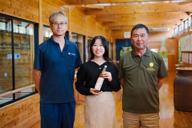 宮崎県産のグレープフルーツと和紅茶を使用し宮崎の焼酎をベースとしたリキュール「温心(おんしん)」が誕生しました。本商品は、素材の魅力を活かして開発された一品です。開発にあたり、県南の緑の里りょうくんから貴重な国産グレープフルーツを、そして県北の宮﨑茶房より和紅茶を提供して頂き、県南の井上酒造で製造。販売は国内外でのルートをもつトレードメディアジャパンが担当。まさに県内各地のネットワークが結集し、宮崎らしさが表現された唯一無二の味わいで、国内外へ届ける一歩が実現しました。女性をターゲットにした手に取りやすいパッケージデザインにもこだわっています。当初は海外輸出を目的としていた商品ですが、現在は国内展開も試行中です。アルコール度数15度のリキュール「温心」は、炭酸で割って爽やかに楽しむのはもちろん、乳製品との相性も抜群で「甘酒割り」といったユニークな飲み方もおすすめです。