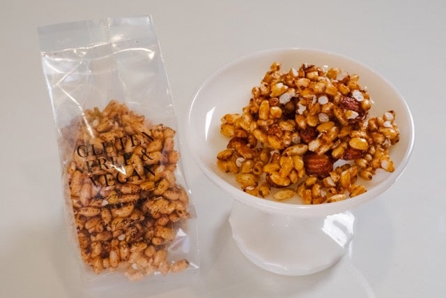 「ポン・ビッツ」は、宮崎県を訪れるアスリート向けに開発されたグルテンフリー&ビーガン対応のシリアルバーです。小麦粉、卵、乳製品を一切使用していないため、素材にこだわった食を選びたい健康志向の方、体調管理を行うアスリートの方でも安心して食べることができます。サクサクとした食感とつまみやすい形状で、日常の隙間時間やトレーニングの合間に手軽に栄養補給ができる一品です。