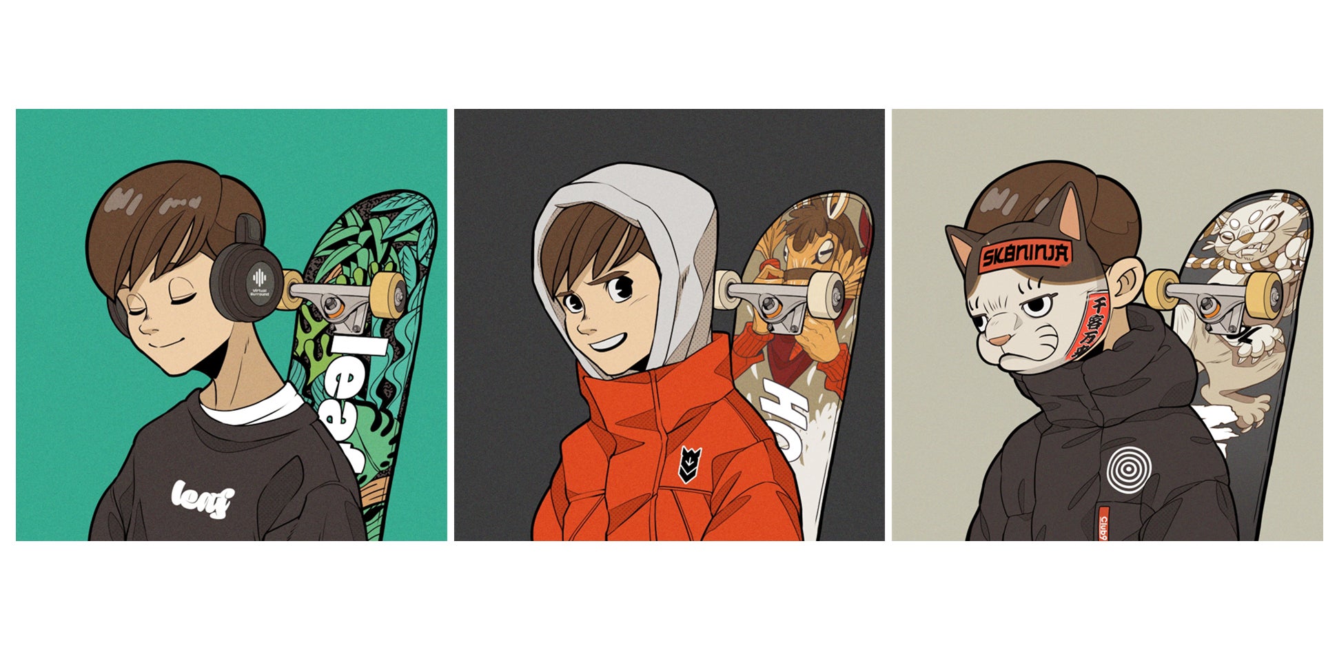 ・堀米雄斗選手をモチーフにした、未来のスケーター青年「HYU(ヒュウ)」のオリジナルアートコレクションを30体限定で販売。日本を代表するNFTコレクション「NEO TOKYO PUNKS」のクリエイターであるNIKO24氏が、ひとつひとつ描き下ろした貴重なアート作品になっています。