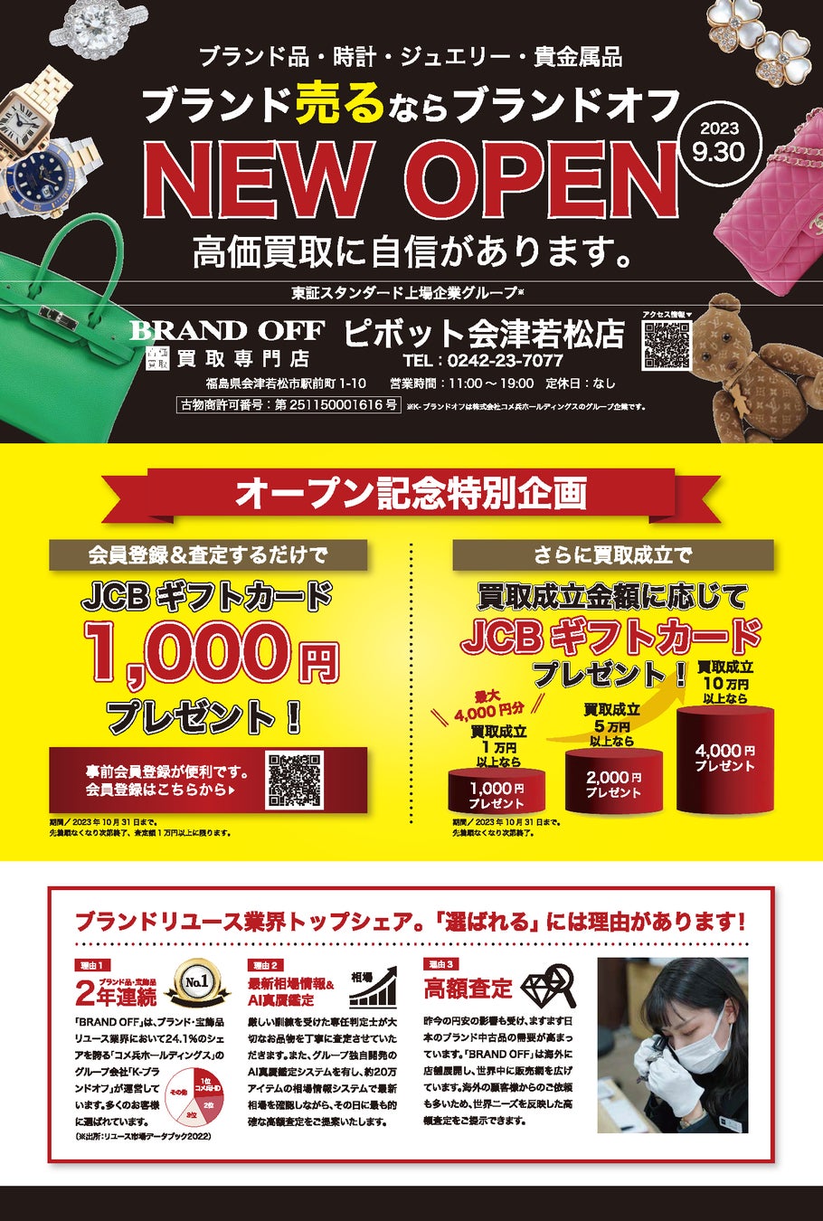 「BRAND OFF 買取専門 ピボット会津若松店」が福島県会津若松市に9月30日(土)オープン
