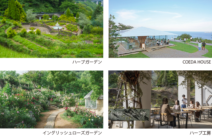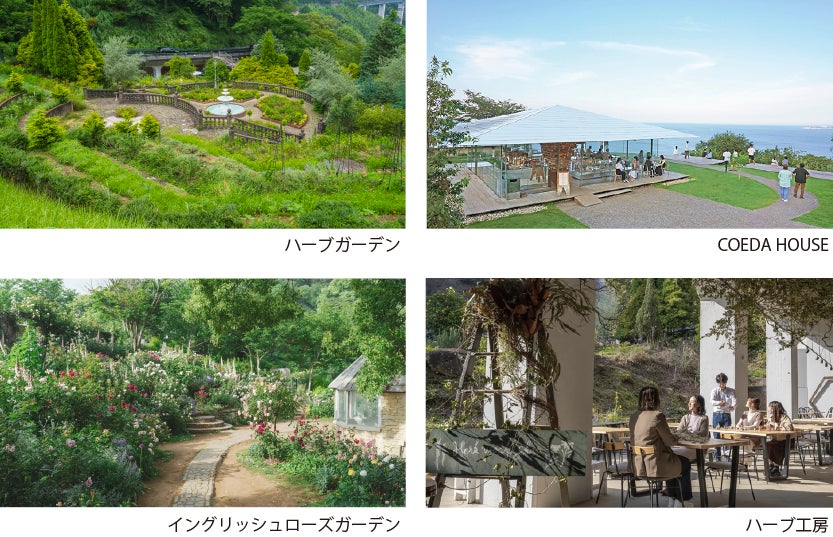 ART LAND PARKであるACAO FORESTは、20万坪の広大な丘陵地に、個性豊かな13のテーマガーデンから構成されています。熱海ブルーに輝く海と空を借景に、季節の花々やハーブが咲き誇り、五感で楽しめるガーデンです。園内には、隈研吾氏設計のカフェ「COEDA HOUSE」をはじめ、曽我浅間神社、ハーブやアロマの手作り体験施設もございます。
