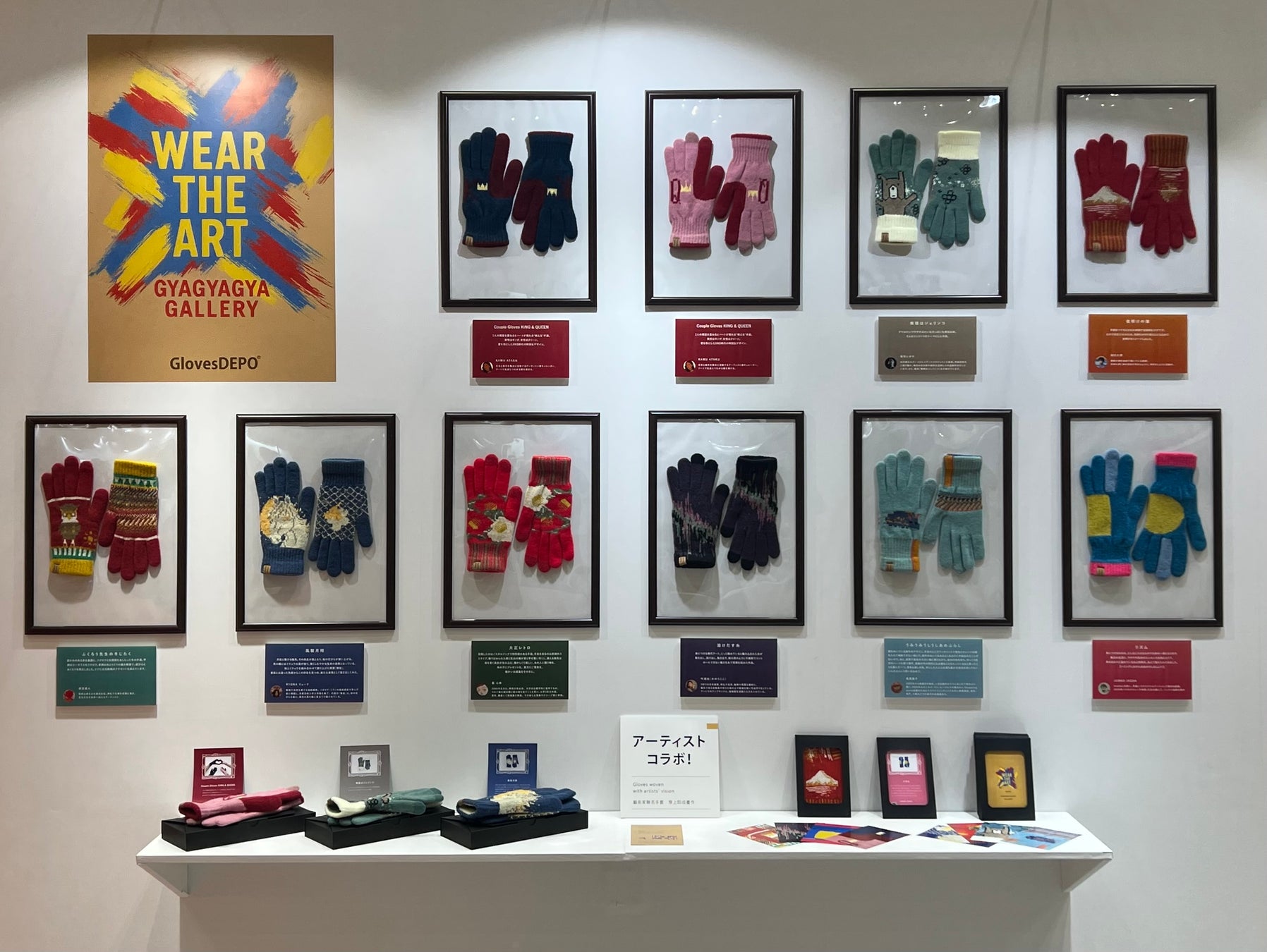 動物・伝統・風景・抽象・ポップアートなど、アーティストごとに独自の世界観が手袋として表現されています。