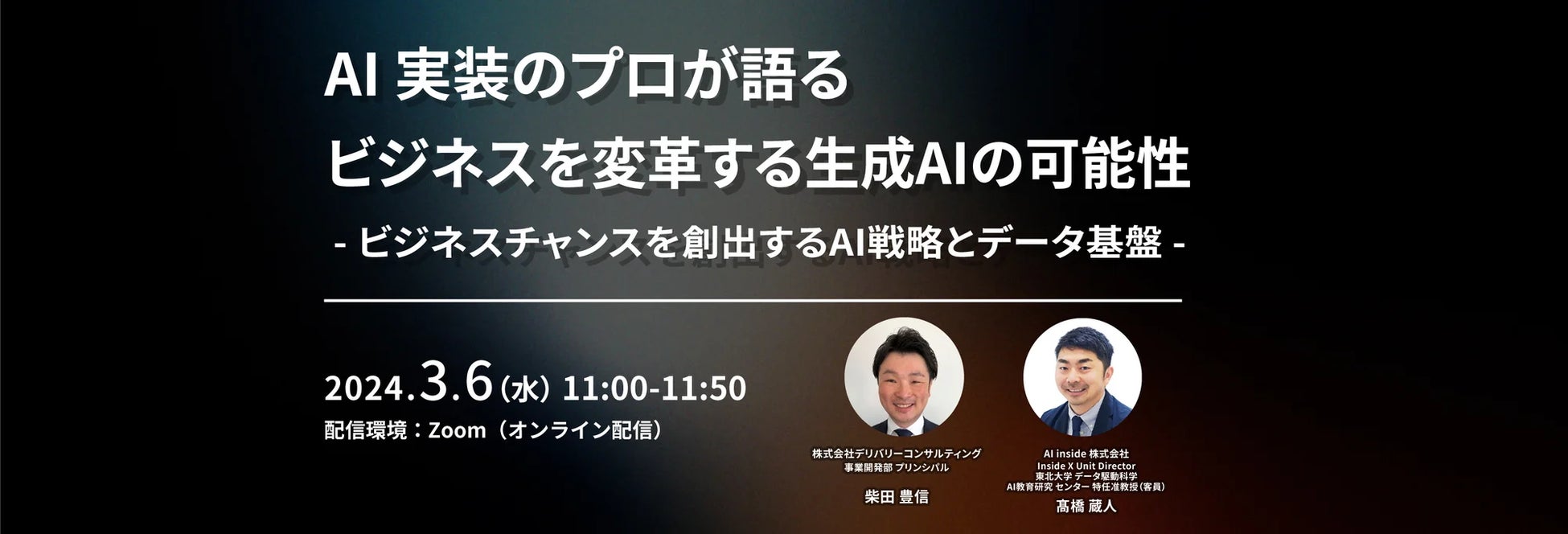【WEBセミナー開催のご案内】「AI実装のプロが語る ビジネスを変革する生成AIの可能性」3月6日(水)11:00~11:50/Zoom(オンライン配信)