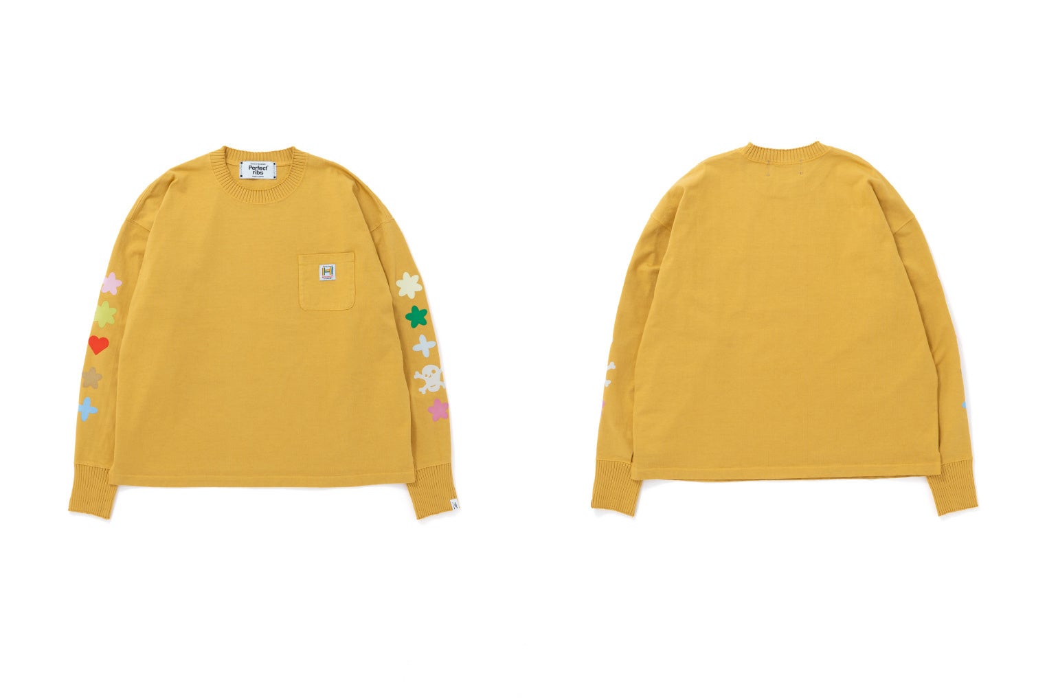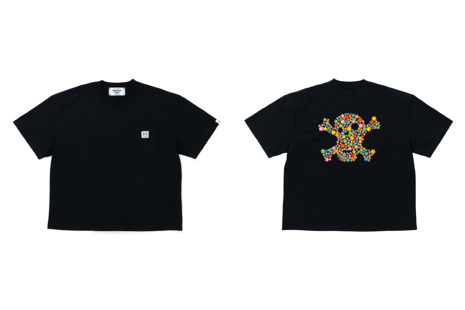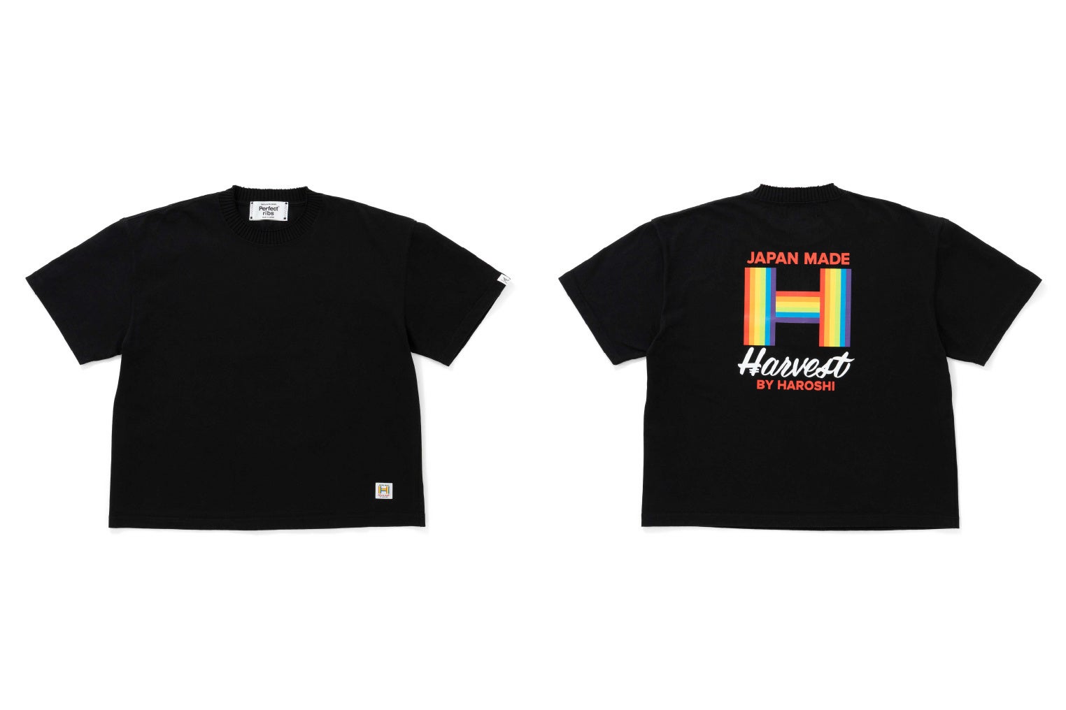 「Harvest」名義でHAROSHIが展開していた初期の作品に着想し、当時HAROSHIがスケートボードの廃材を削り上げた設計図を基にグラフィックを起こし、Perfect ribs®︎の肉厚生地を用いた人気品番に施しました。