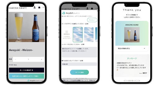 硬度”ゼロ”の超軟水クラフトビール HAKUBA CRAFT がeギフトサービス『AnyGift』に対応