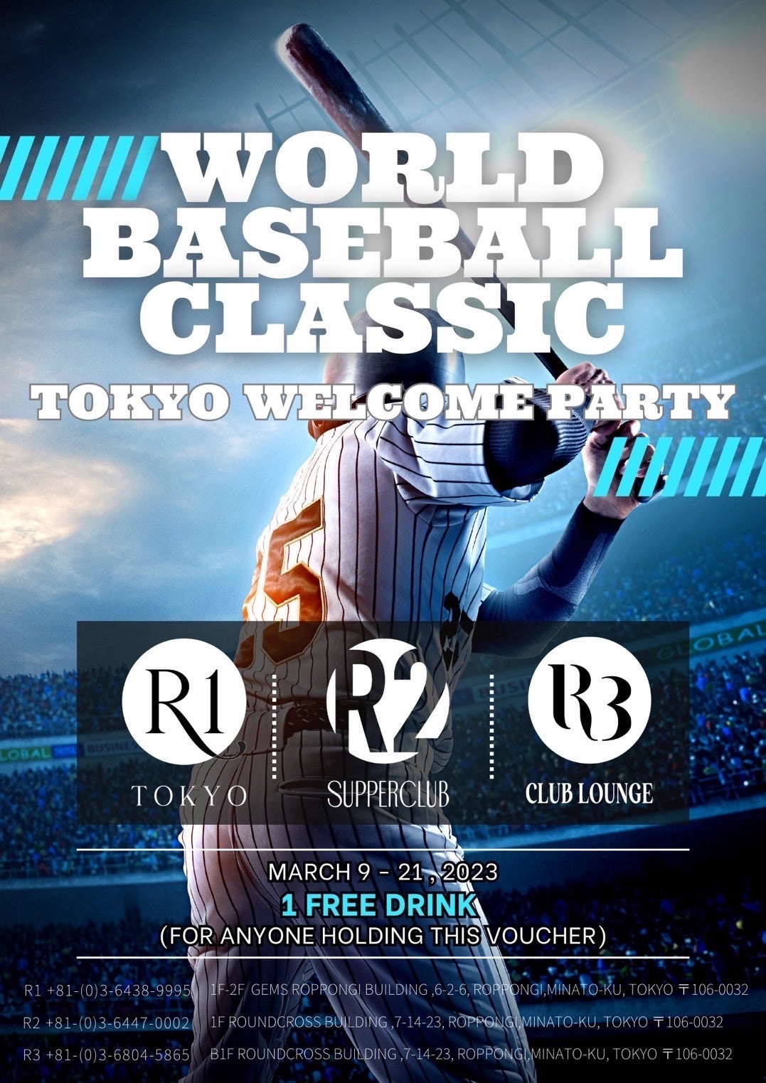 R1Tokyo Bar & Restaurant/R2 SUPPER CLUB/R3 Club Loungeの各3店舗にて、3月9日〜21日のWBC開催期間中、特別イベント「WBC TOKYO WELCOME PARTY」を実施。