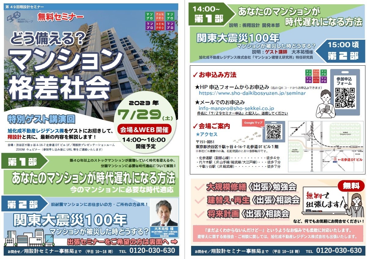 「どう備える?マンション格差社会」をテーマに大規模修繕コンサルのパイオニアである翔設計がセミナー開催!