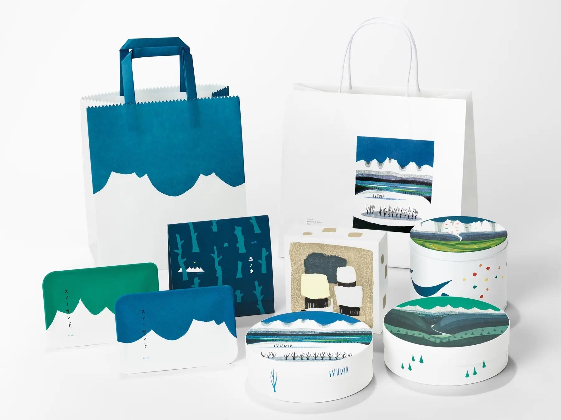 SNOWSは、パッケージデザインにもこだわりが詰まっています。雪と⼭を想起させ、懐かしさを感じさせるパッケージは、“⼭の版画家”⼤⾕⼀良さんの作品を使⽤。冬に北海道からやってくるブランドとして、北海道の冬や雪を象徴するイメージを探し、⼤⾕⼀良さんの作品に出会い、パッケージに採⽤させていただきました。パッケージ単体のデザインだけではなく、ブランド全体でSNOWSの世界観をお届けすることを心がけています。