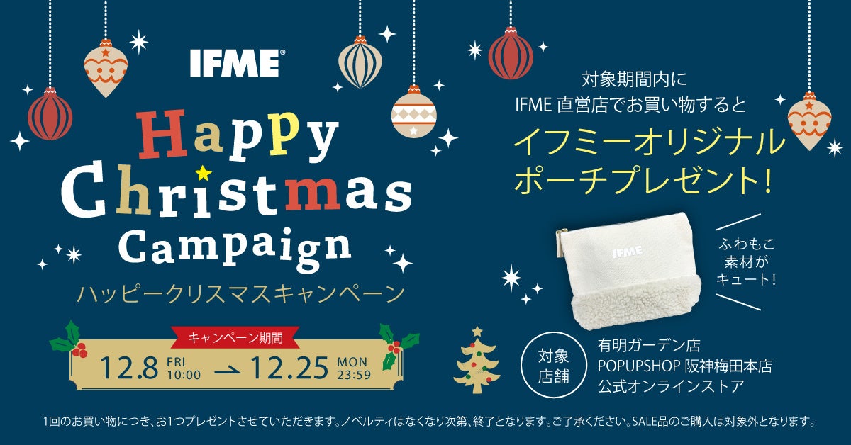 12月8日(金)より、「イフミー有明ガーデン店」「イフミーPOP UP店 阪神梅田本店」「イフミー公式オンラインストア」にて、『ハッピークリスマスキャンペーン』を開催いたします。