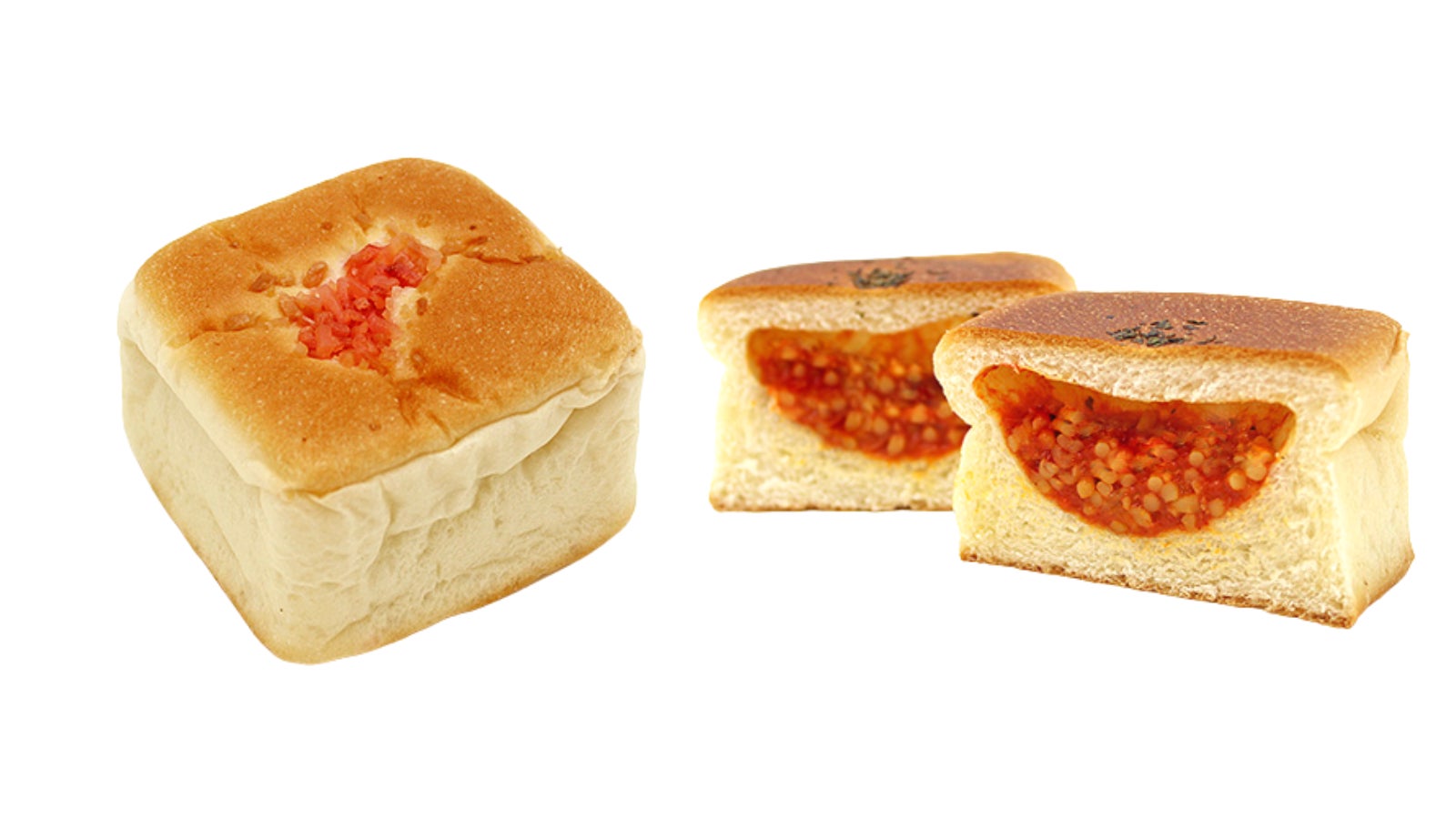 オレンジ色のほんのり甘めなナポリタンフィリングをロールパン生地で包みました。