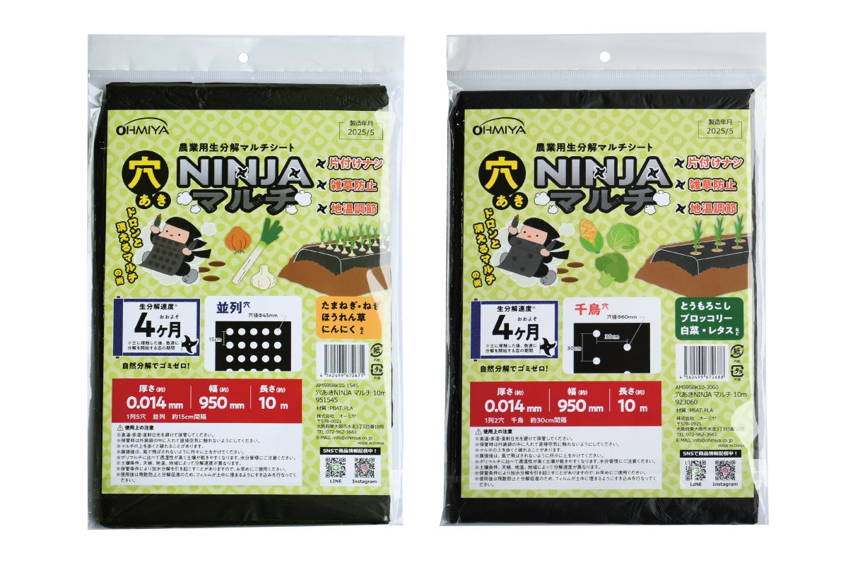 生分解性マルチシートや噴霧器などの農業資材を製造・販売する株式会社オーミヤ(所在地:大阪府東大阪市、代表取締役:道野弘樹)は、2025年6月25日より、玉ねぎ・にんにく・とうもろこしの栽培作業を効率化する穴あきタイプの生分解性マルチシート「NINJAマルチ」シリーズ4モデルを新発売いたします。