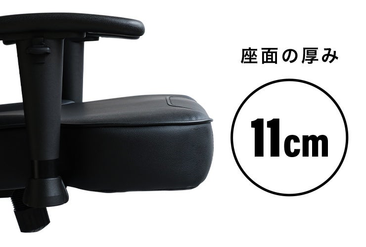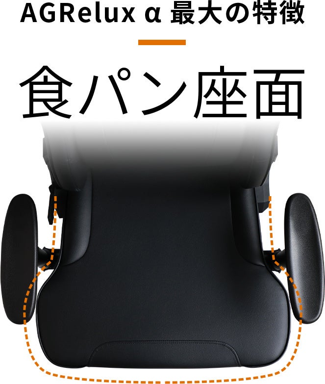 余計なパイピング・段差をなくしたフルフラットな食パン型の座面で、あえてお尻の位置を固定せずに開放させ、お尻・太ももへの負荷がかかりにくい設計となっています。