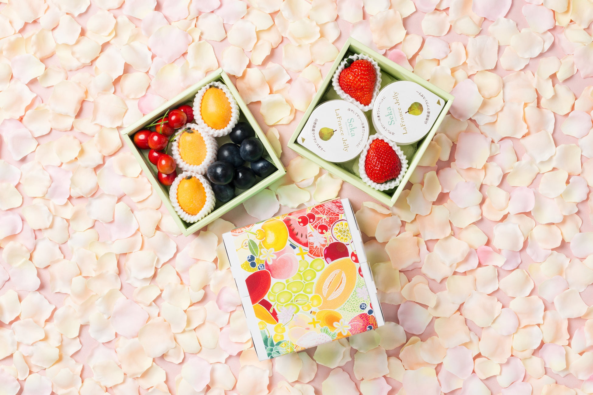 旬の国産プレミアムフルーツ&山形ラフランスゼリー4個のミニお重セット
