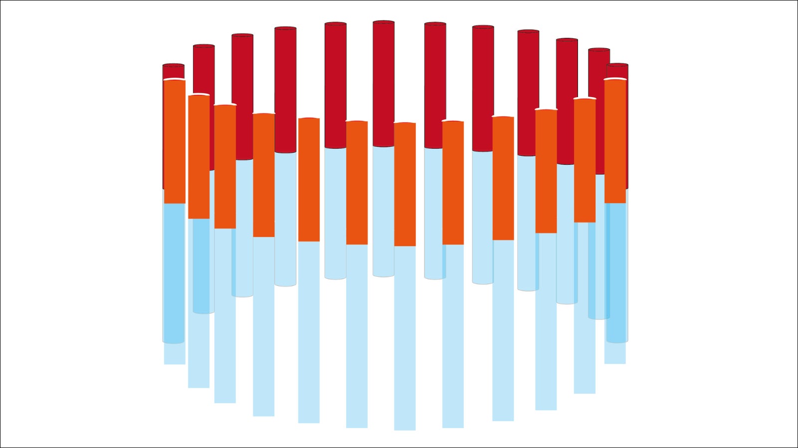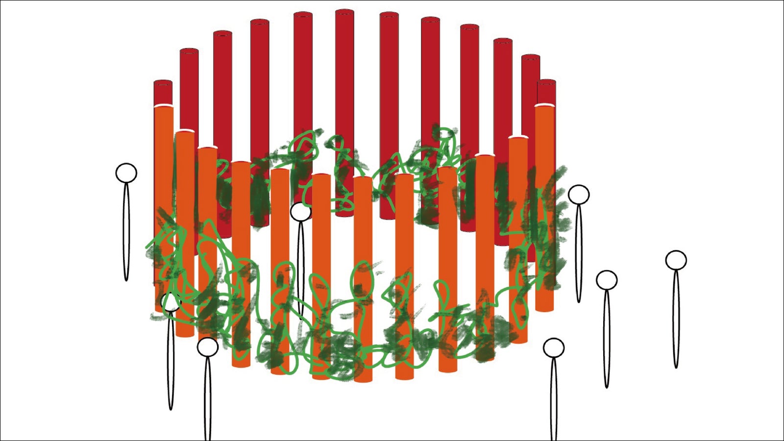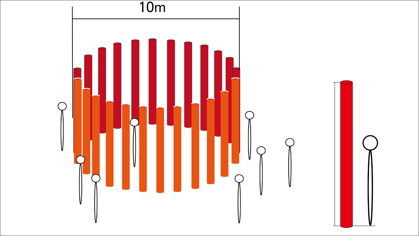 直径40cm・高さ3mの鉄柱16本、赤色で塗装し、円を描くように設置します。
