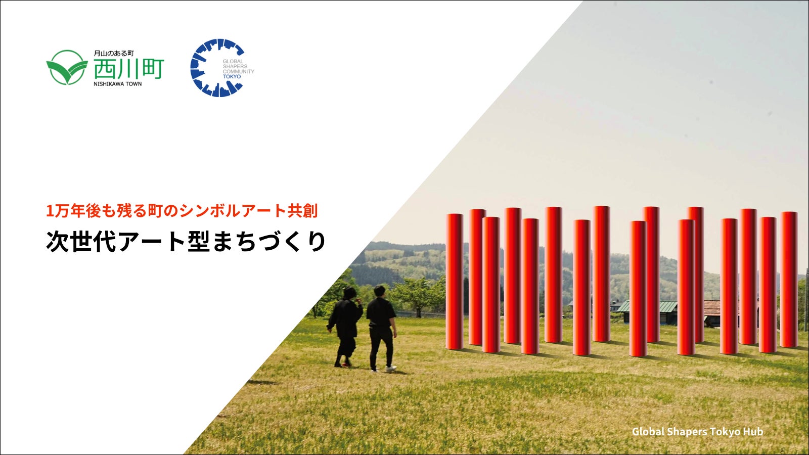 世界経済フォーラムの若手傘下組織「GSC Tokyo Hub」と山形県西川町で推進している本取り組みは、国道112号線沿いの睦合公園に、「西川町の新たなシンボルを作る〜次世代アート型まちづくり〜」として未来を見据えた新しいまちづくりを町民・関係人口と共に推進するアートプロジェクトです。