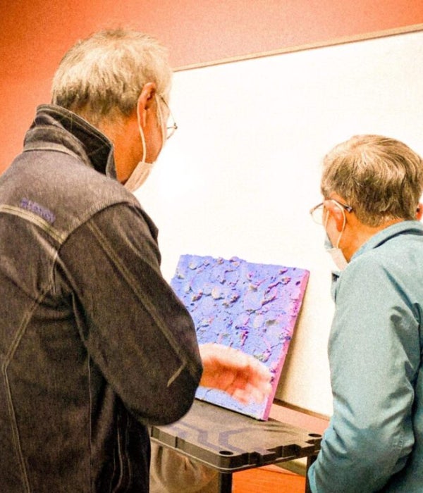 町への想いは、アートの色であるオレンジの蛍光色で書き込んでいただきます。最終的には蛍光色で塗るため、書き込んだ想いは目には見えなくなります。ですが、確かに想いと一緒にアートは残り、100年先・1,000年先の人々にまで伝わります。