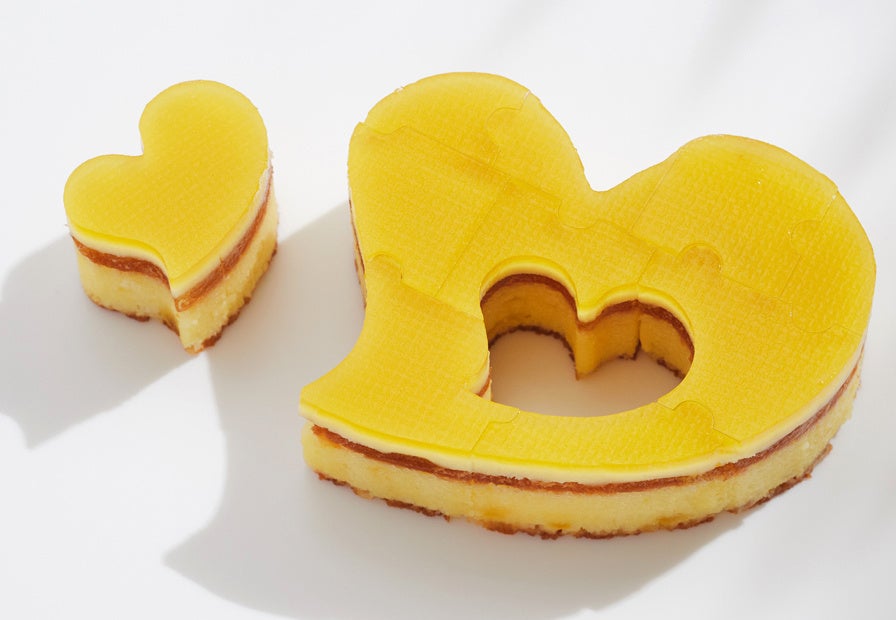 刻んだパイナップルを加え、しっとりと香りゆたかに焼き上げたブラウニーに、パイナップルの果汁感と芳醇な甘さが引き立つパート・ド・フリュイをあわせました。ハート型のパズルに遊び心を添えて。冷やすとより美味しくお召し上がりいただける、夏限定の味わいをお楽しみください。