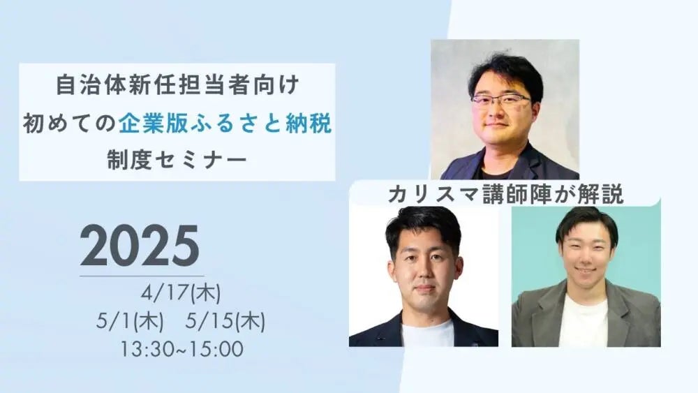 今年で4年目の開催となる本セミナーでは企業版ふるさと納税担当に新たに着任した担当者様に向けて、今後実務を担うにあたり必要な知識をコンパクトにまとめて提供いたします。