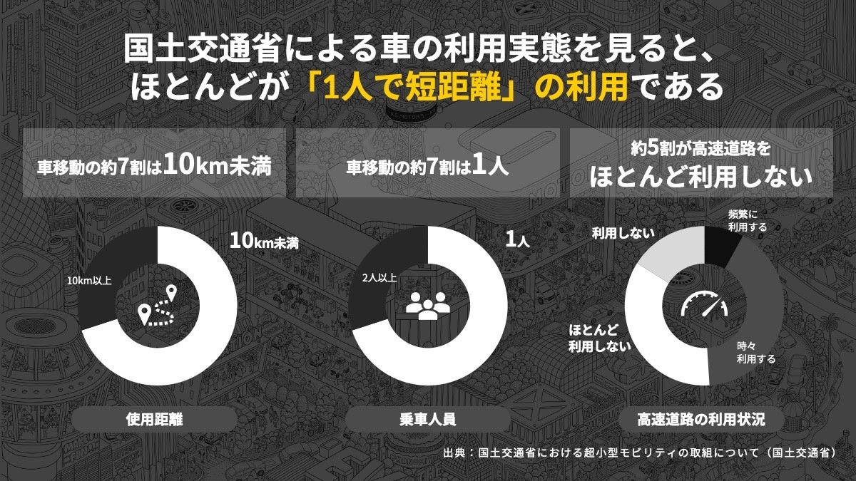 人口減少や公共交通の縮小が進む中、日本では地方を中心に「車がなければ暮らせない」地域が広がりつつあります。一方で、日常の移動の多くは1人での短距離利用にとどまるため、軽自動車ですら過剰なスペックになりがちです。その結果、維持費や燃料費といった家計負担や、環境負荷の増加といった課題が顕在化しています。