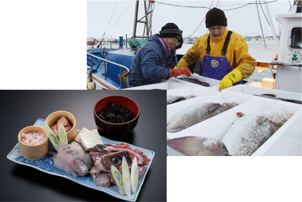庄内浜の漁港より仕入れた寒鱈を使用し、寒鱈汁を提供します。