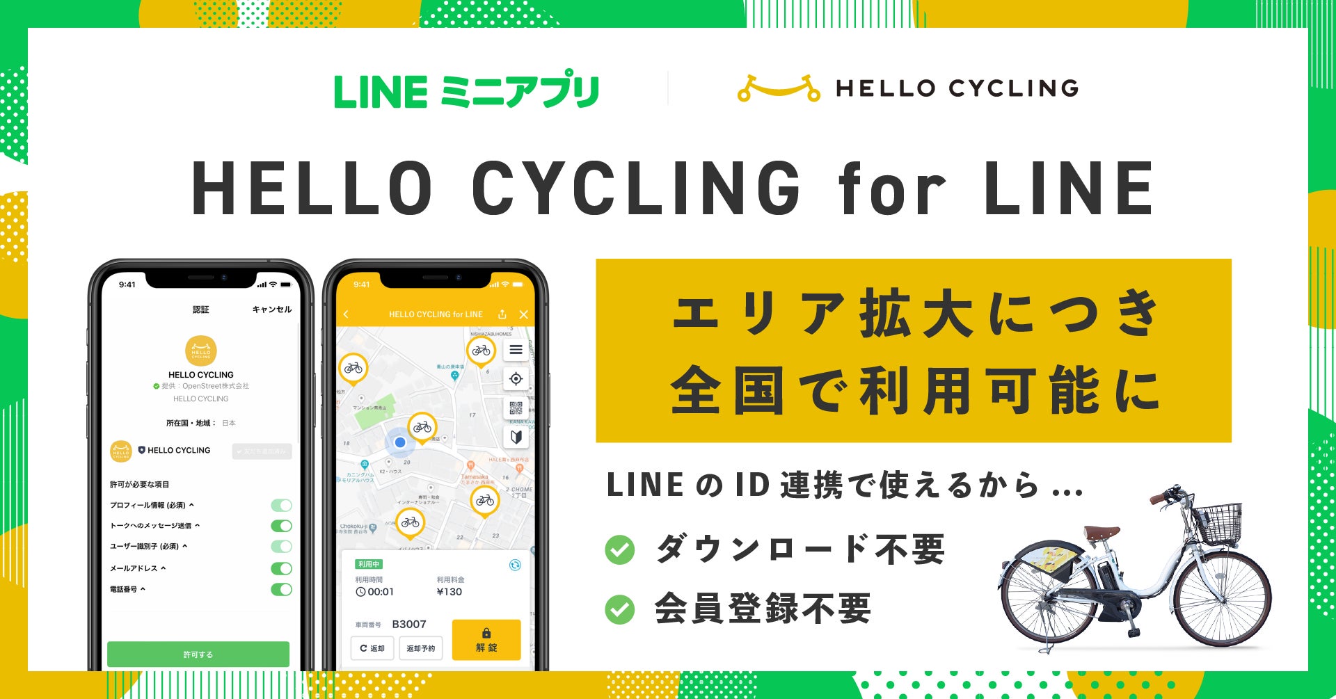 シェアサイクルサービスを簡単に利用できるLINEミニアプリ「HELLO CYCLING for LINE」全国展開を開始
