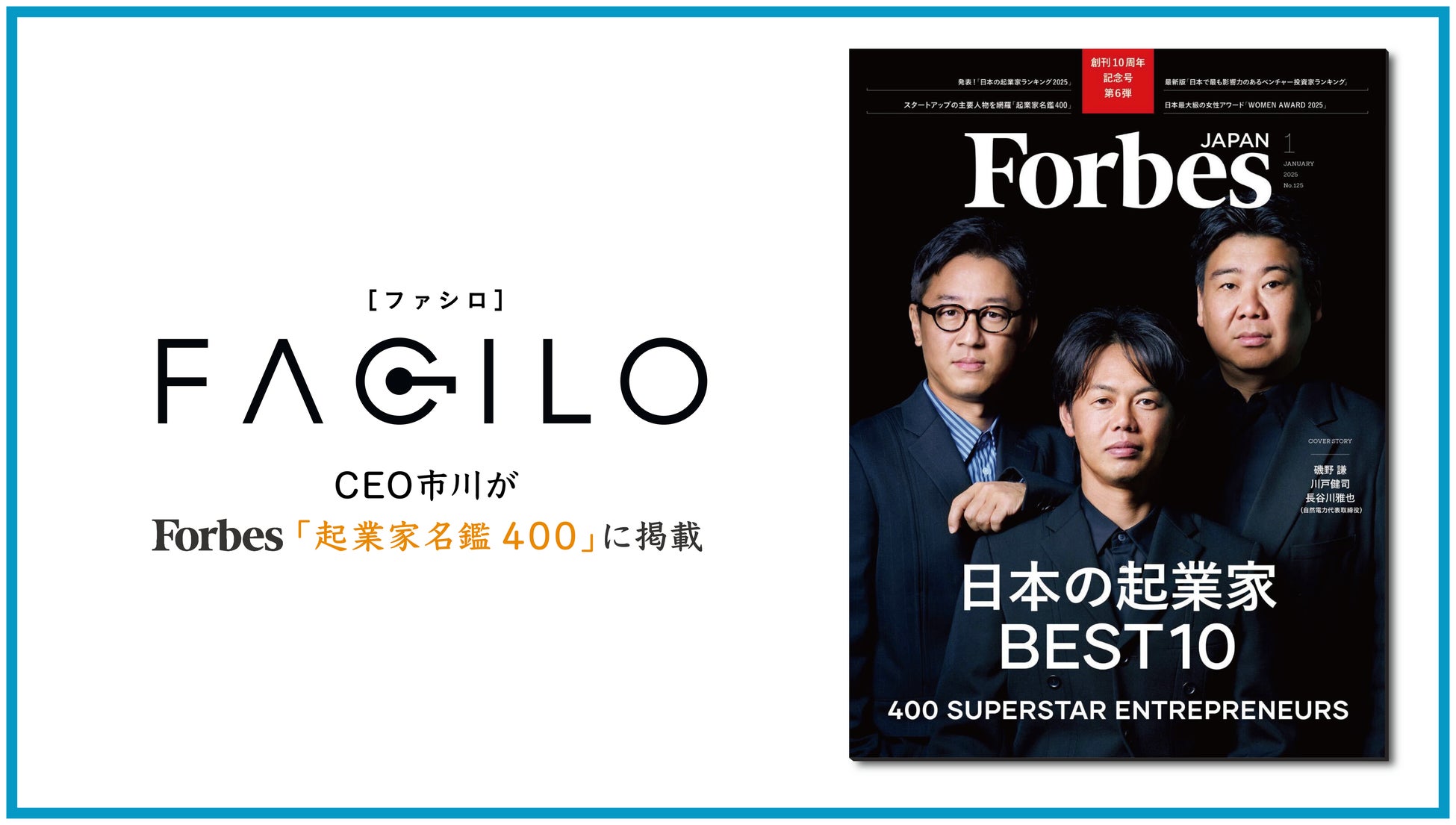 Facilo、CEO市川がForbes JAPAN「日本の起業家名鑑400」に掲載