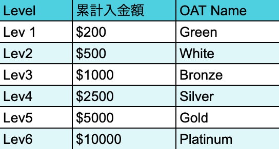 獲得できるSlash OATと累計入金額の条件は以下の表をご覧ください。