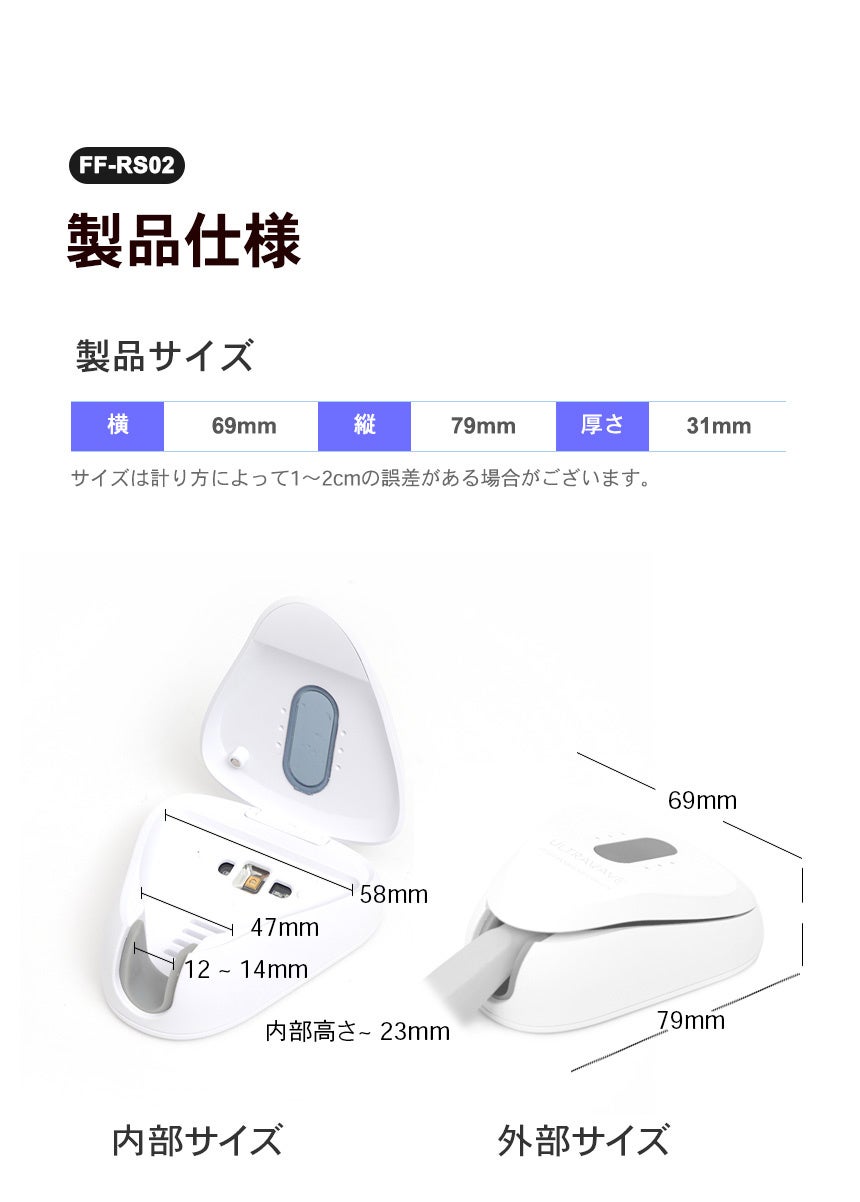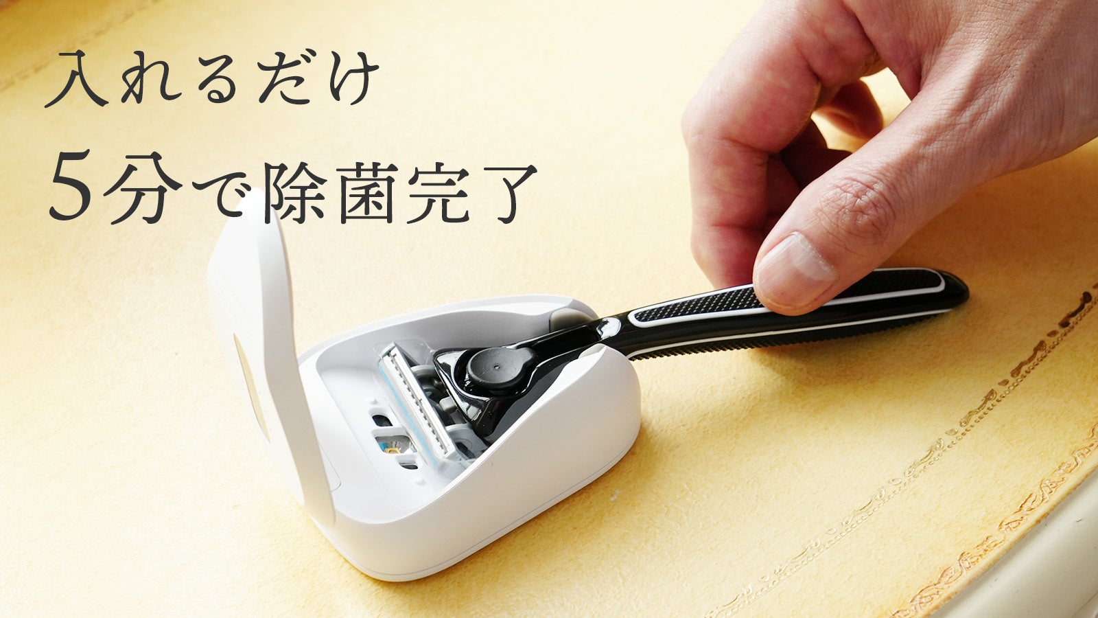 カミソリをUV-C深紫外線で除菌するのと、キャップ式にしたことでカミソリを持ち歩きできる仕様で仕上げました。