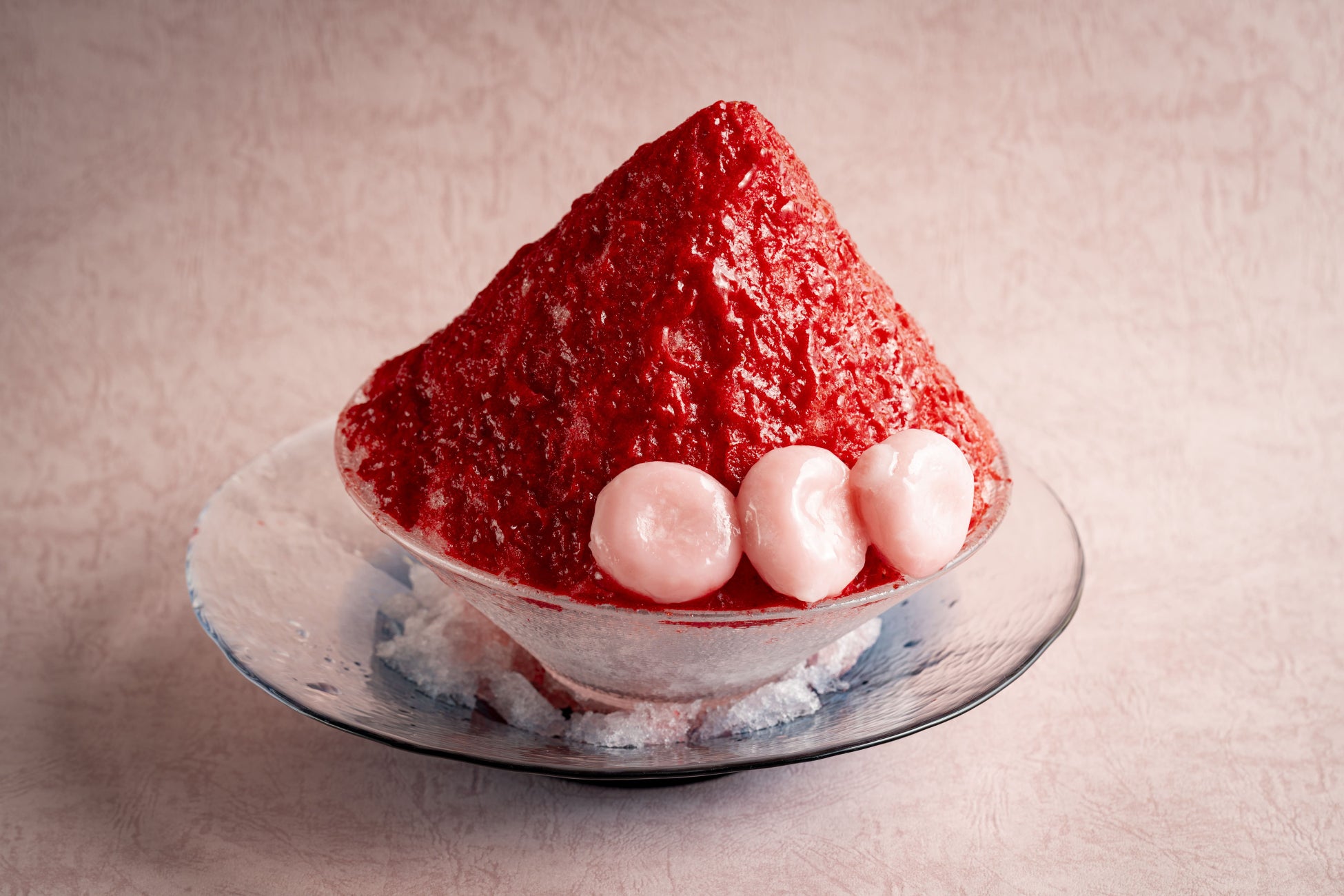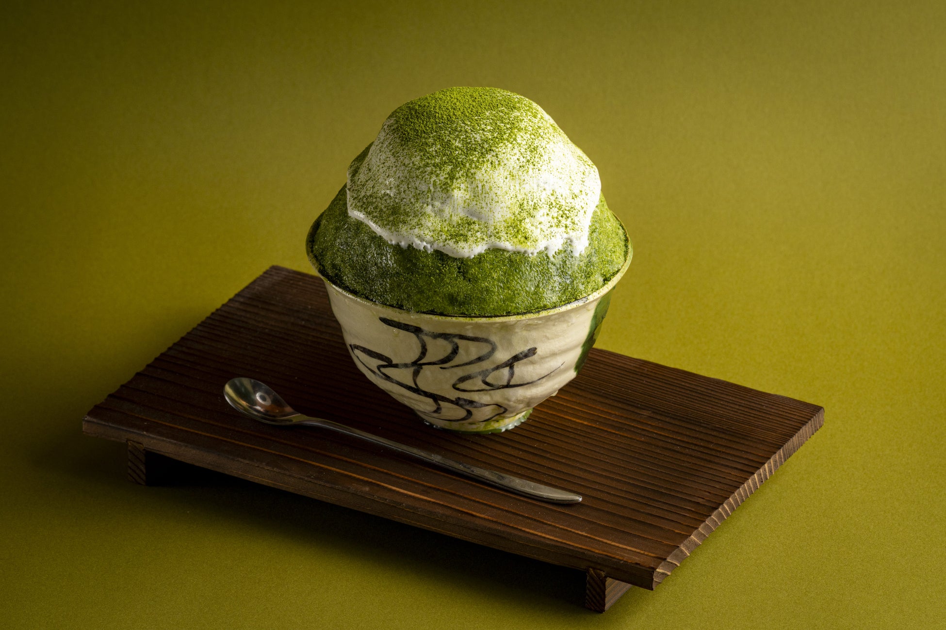 抹茶のかき氷は、香り高い宇治抹茶を贅沢に使用し、濃厚な抹茶ソースに練乳のやさしい甘さを重ねた宇治抹茶金時仕立て。中には風味豊かなあずきを忍ばせ、和の奥深さを感じられる一品に仕上げました。