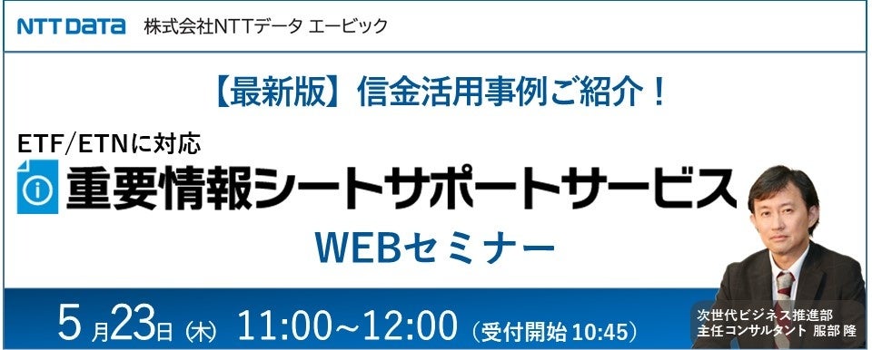 この「重要情報シートサポートサービス」の概要、信金での活用事例と、制度等の最新情報をお伝えするWEBセミナーを5月23日(木)に開催します。