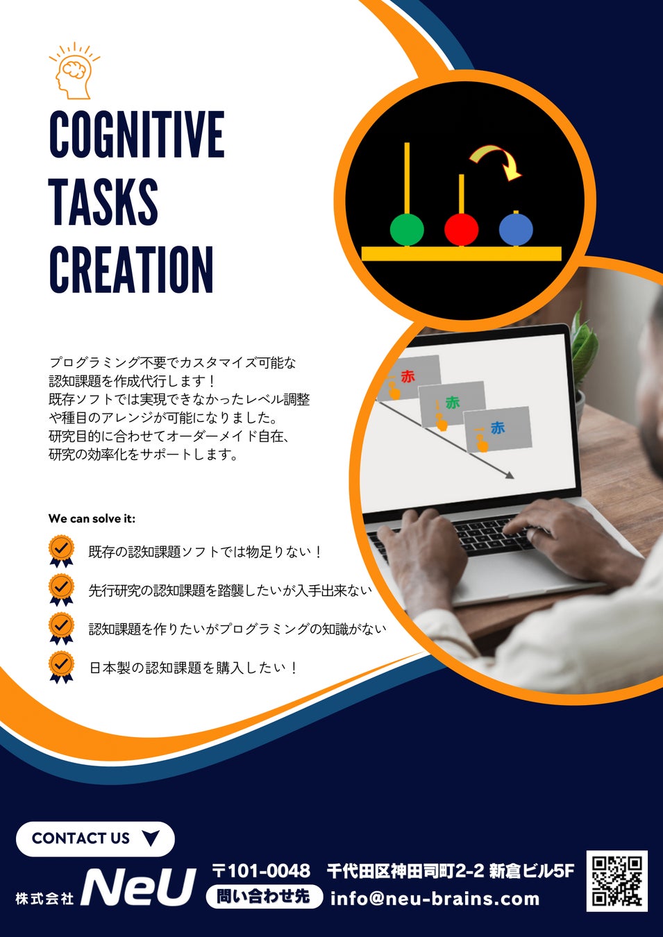 株式会社NeU(本社:東京都千代田区、代表取締役:禰寝義人、以下、NeU)は、研究市場向けに、プログラミング不要でカスタマイズ可能な認知課題作成サービスをリリースしました。本サービスは、心理学、医療、食品分野の研究者やデータ取得を必要とする専門家向けに設計されており、既存の認知課題ソフトでは実現できなかったレベル調整や種目のアレンジが可能となっています。