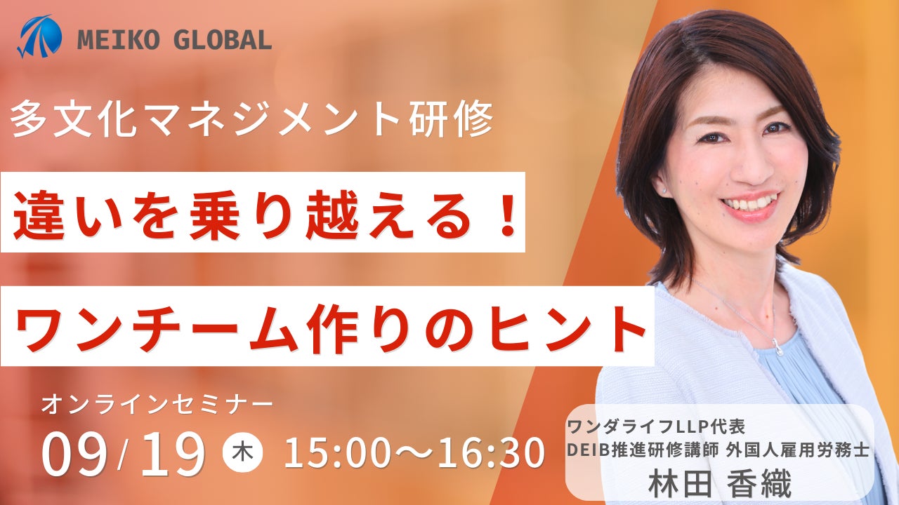 外国人材の採用および教育・研修のワンストップサービス「MEIKO GLOBAL」を展開する株式会社明光キャリアパートナーズ(本社:東京都千代田区、代表取締役:小西悠太)は、多文化マネジメント研修の無料体験セミナーを開催します。
