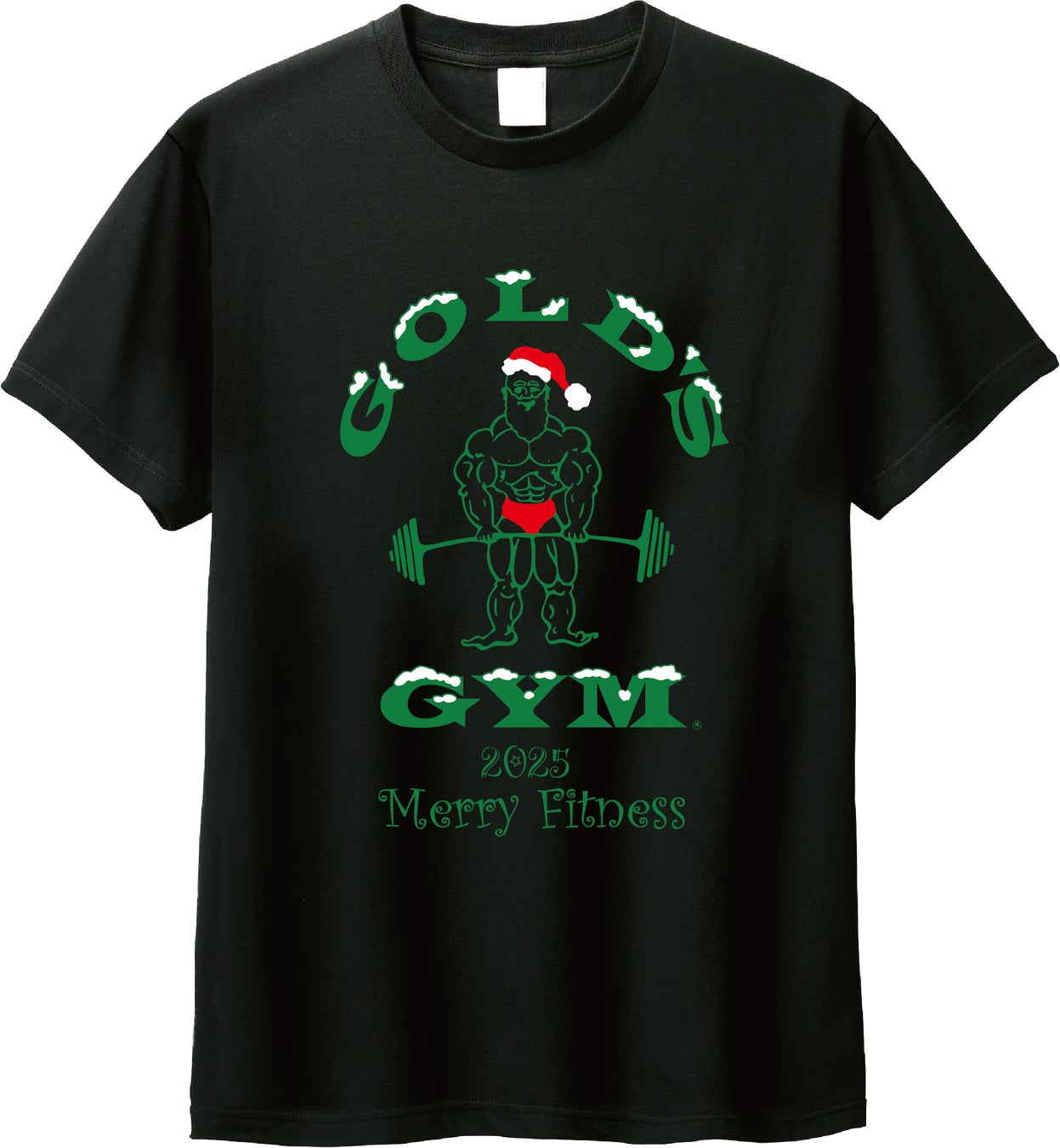 2025年は、Tシャツを グリーンとレッドの2カラーのラインアップで展開。 ゴールドジムらしいヘビーウエイトの世界観に、クリスマスらしい華やかさをプラスした、特別感のある1枚です。