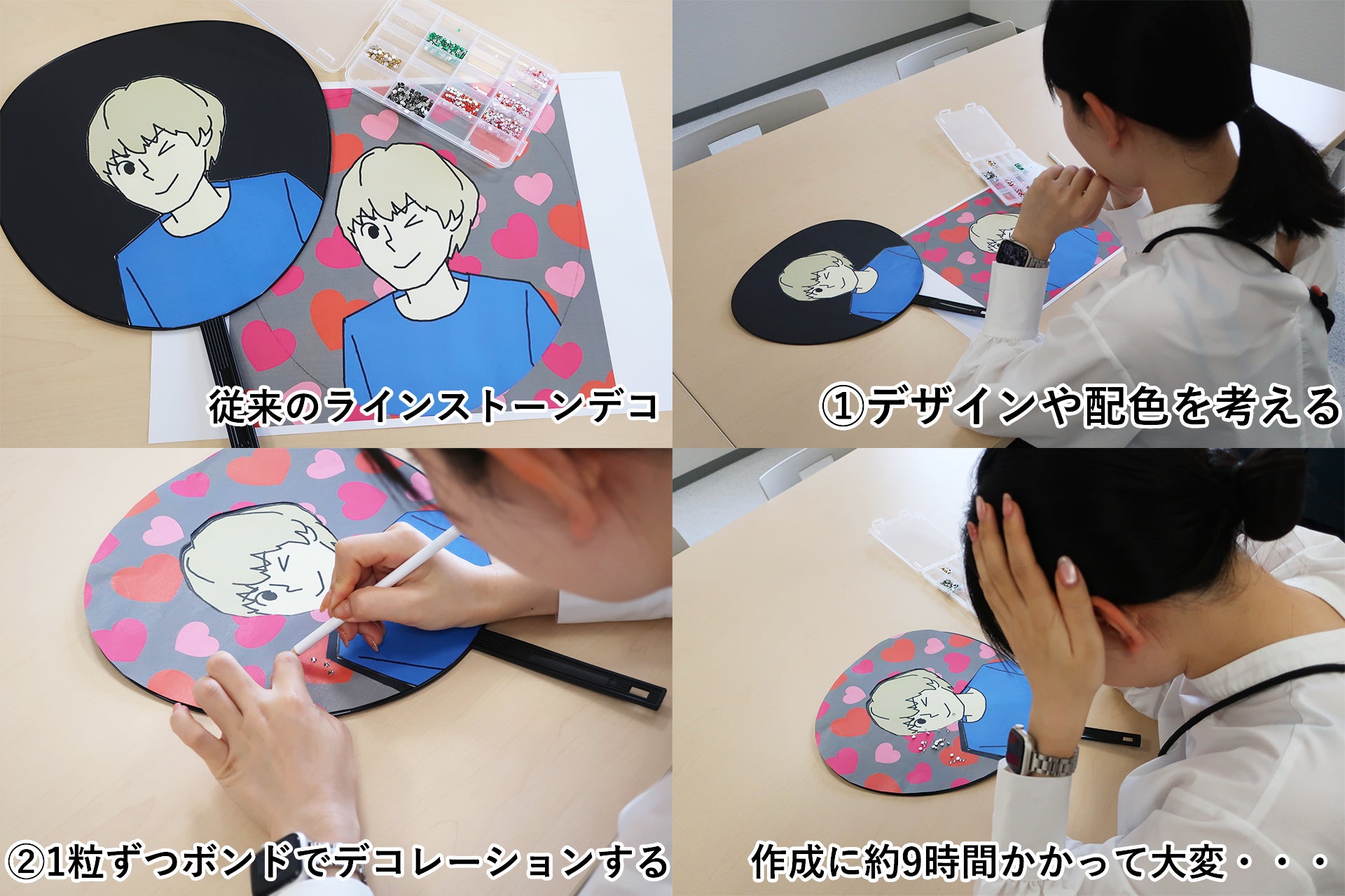 当社はこれまで、「つくってこ、こだわってこ」をモットーに、多くの商品開発に取り組んできました。今回私たちが注目したのは、推し活で欠かせない“うちわ”です。近年、推し活人口は増加し、1,400万人(※1)が推し活を楽しんでいると言われています。SNSでは、公式うちわをラインストーンで装飾する“うちわデコ”が広がりを見せ、推し活の新しい表現として定着しつつあります。