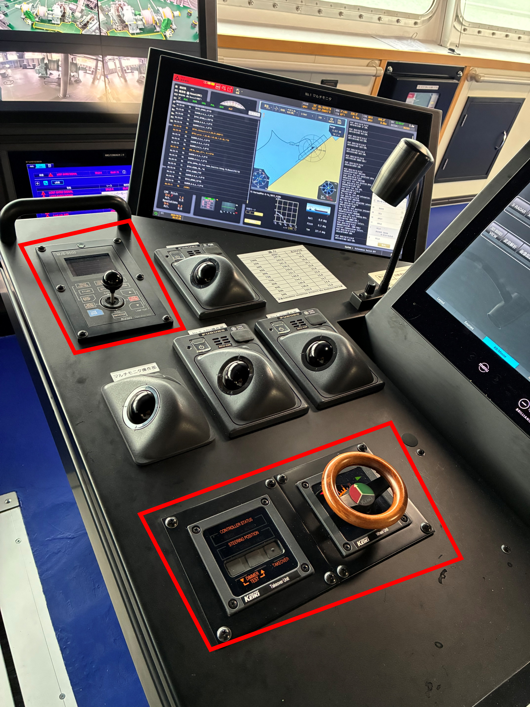 加えて、自動運航船のセンサー統合に必要な高精度の動揺センサーや電子傾斜計(TI-100シリーズ)の開発、ならびにジョイスティックコントローラー(MJS-9000)およびテイクオーバーユニット(ミニ舵輪) の搭載により、着座したまま操船が可能な「ワンマンブリッジ」の実現にも貢献しています。