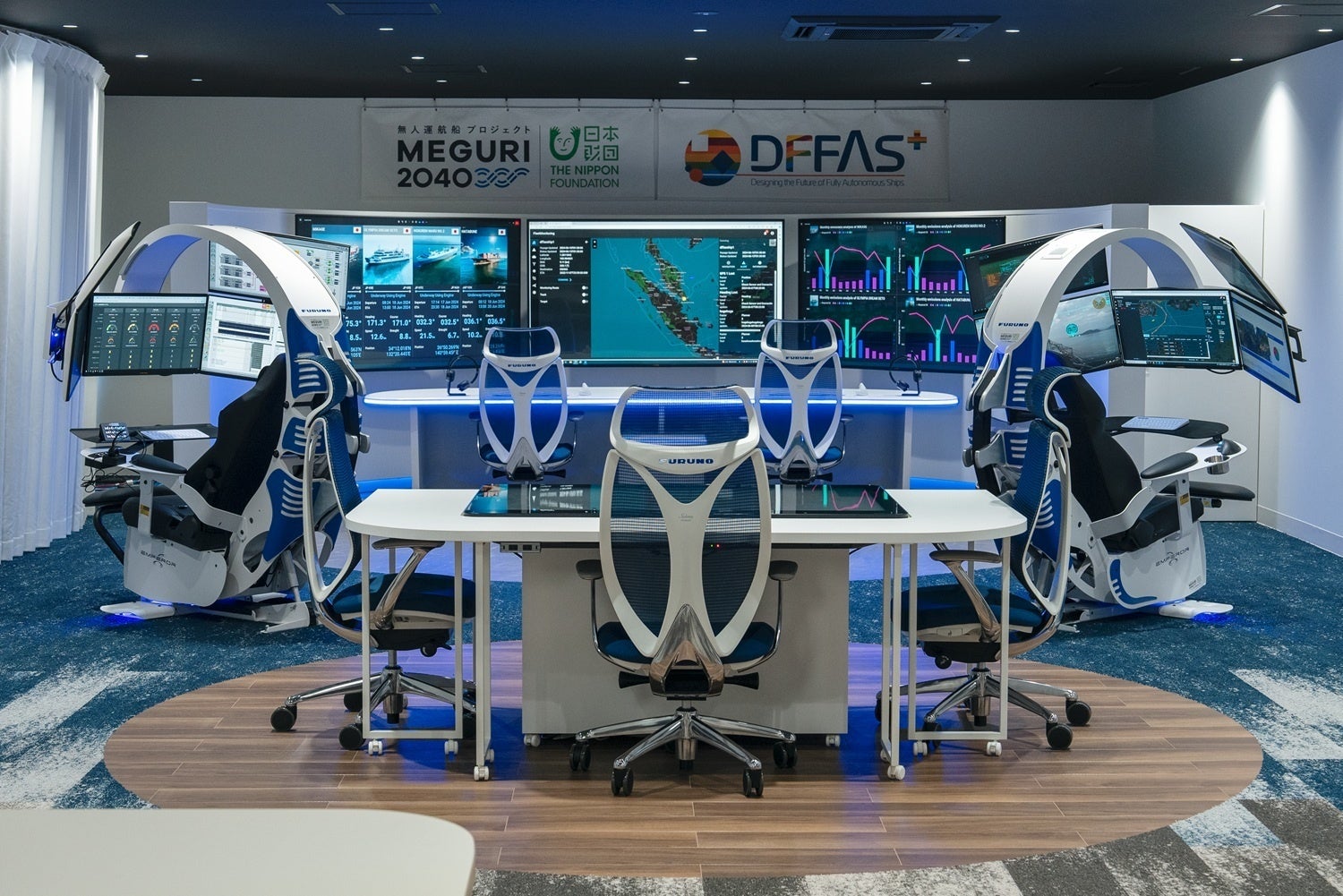 兵庫県西宮市の古野電気株式会社社屋内に設置されており、陸上から用途や航行環境の異なる複数船舶を同時に航行支援する体制を世界で初めて実現しました。船員の負担軽減や船舶の安全性向上に加え、将来的な無人運航船の普及を見据えた運航モデルの確立に貢献しています。