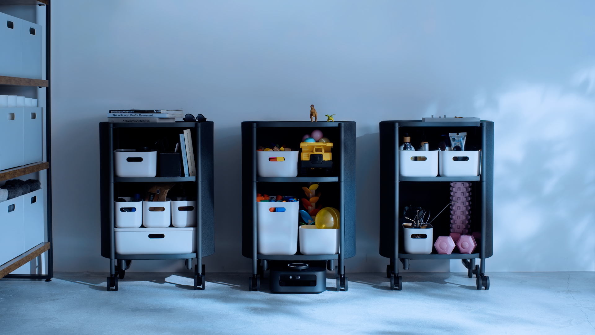 カチャカは、Preferred Roboticsが開発した、人の指示で家具を動かす家庭用自律移動ロボットです。専用のキャスター付き収納「カチャカシェルフ」とドッキングすることで、指定の場所まで障害物を避けながらモノを運ぶことができます。AI技術の搭載やQualcommのテクノロジーにより、これまで難しいとされてきた、環境変化の激しい居住空間での柔軟な自律移動を実現。「カチャカ」と「カチャカシェルフ」により、人が家具に合わせて動くのではなく、人に合わせて家具が動くというスマートファニチャーのある生活を提供します。