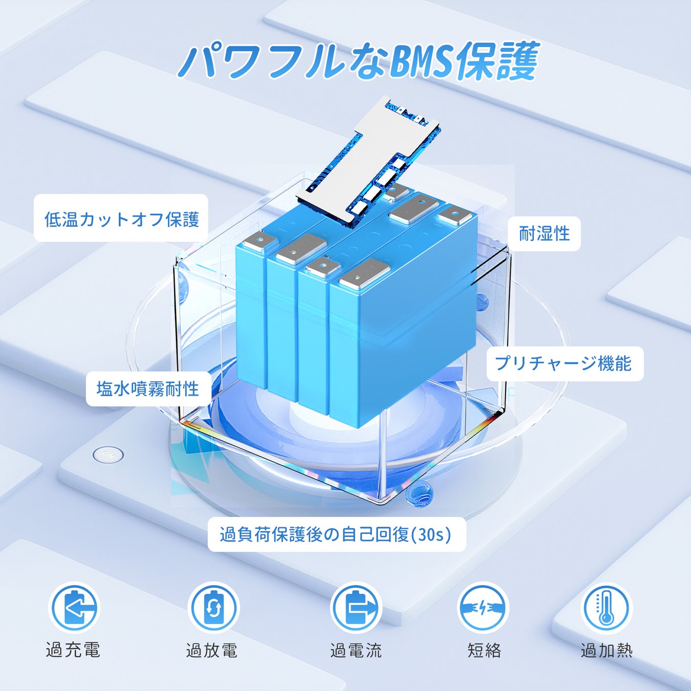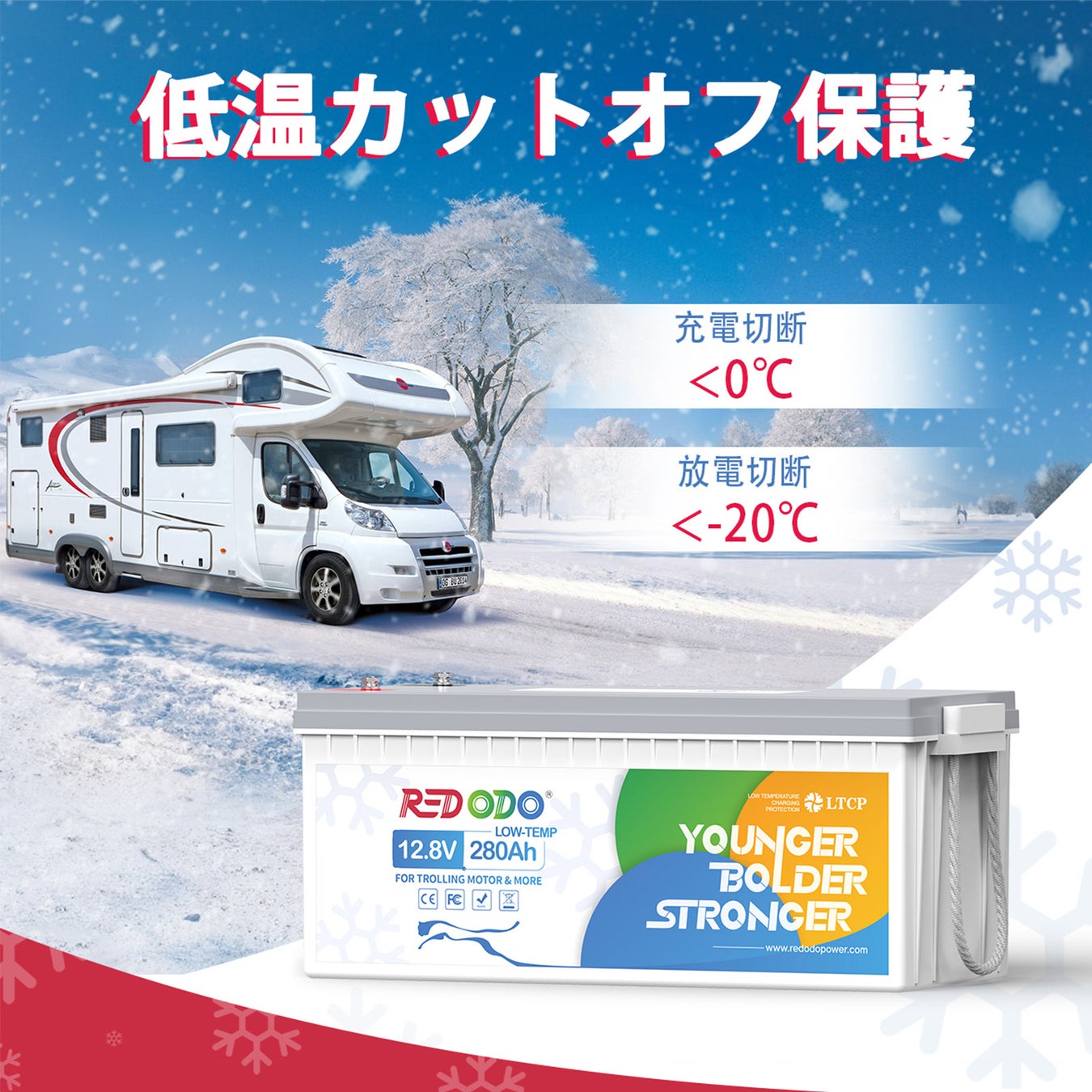 低温環境での充放電を保護し、冬場や寒冷地での使用に最適です。