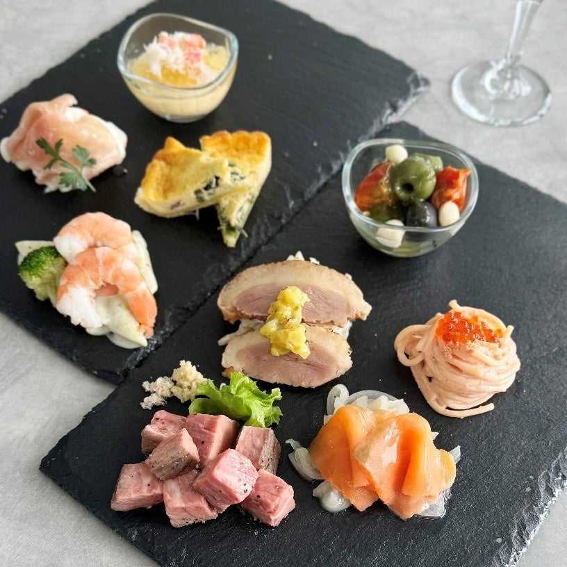 希少部位トモサンカクのローストビーフなど、全9種類のごちそうが味わえるオードブルです。