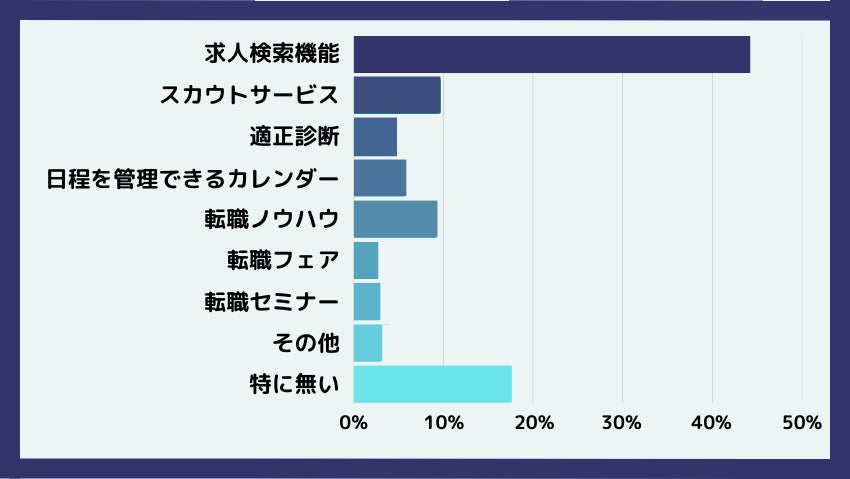 最も便利だった機能・サービスについては、「求人検索機能」が44%を占める結果となりました。
