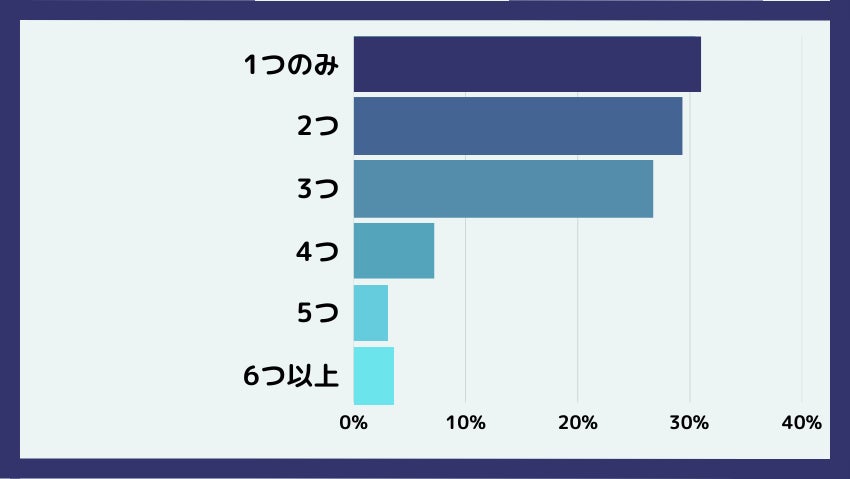 転職サイトの利用数は1つが30.7%、2つが29.2%、3つが26.5%と、2~3つ程度のサイトを使い分けている人が多いことが分かりました。