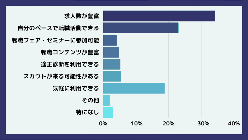 スカウトサービスなどの転職サービスよりも、効率よく求人を探したいという人が多かったと言えそうです。