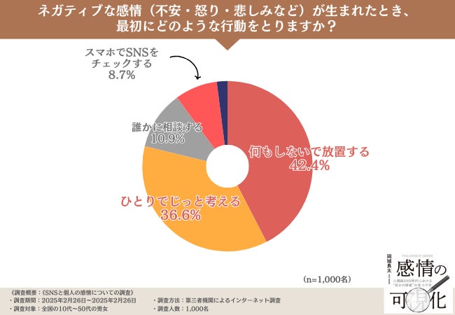 まず初めに、『ネガティブな感情(不安・怒り・悲しみなど)が生まれたとき、最初にどのような行動をとりますか?』と質問しました。