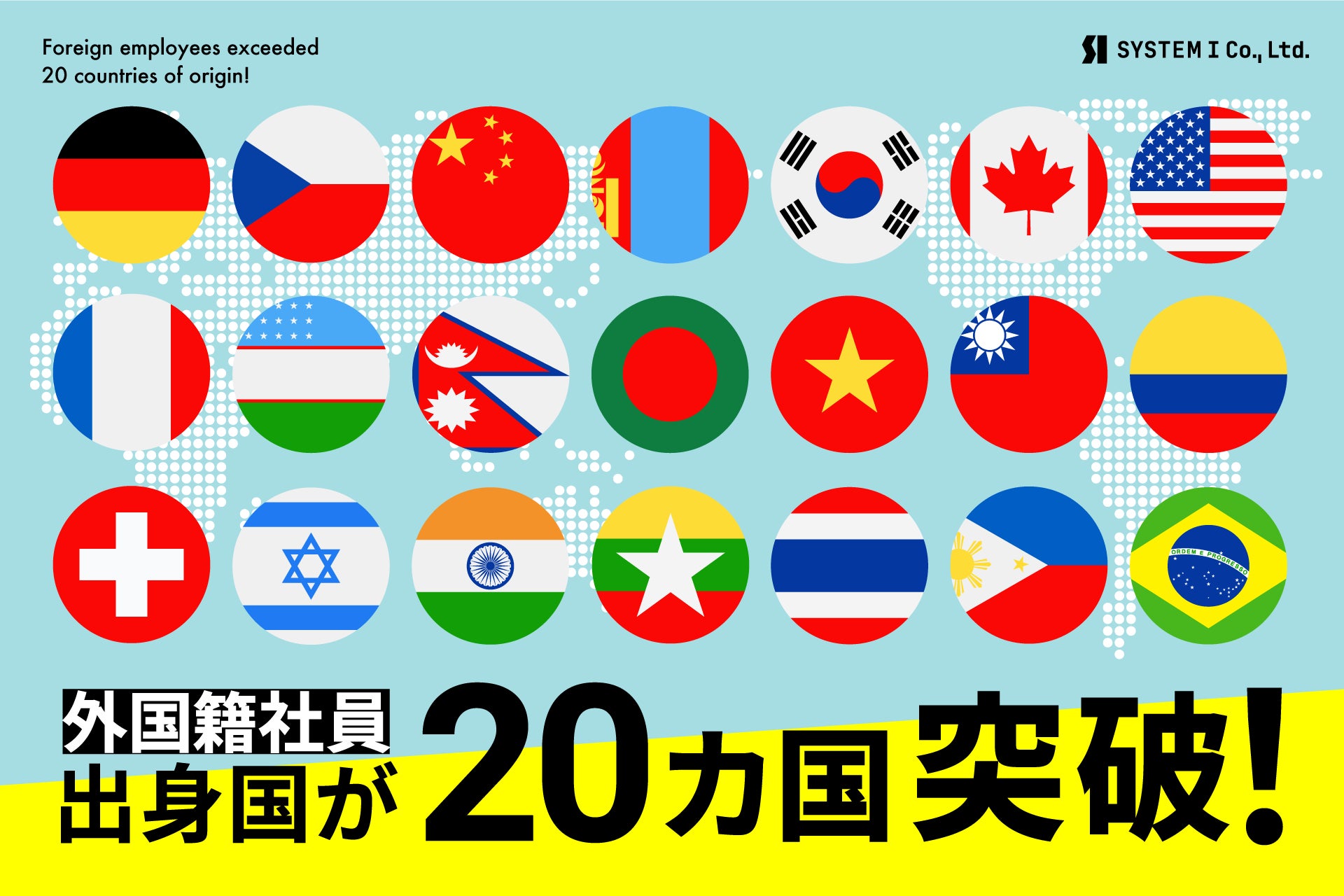 システムコンサルティング会社の株式会社システムアイ(本社所在地:神奈川県横浜市、代表取締役社長:葛川 敬祐、以下 システムアイ)は、2024年6月に当社に就業する外国人材の出身国が20カ国を超えたことを発表します。厚生労働省によれば(※1)、外国人労働者が就業者全体に占める割合は2022年度で2.7%となっていますが、当社は約10倍の20%を外国籍社員が占めています。